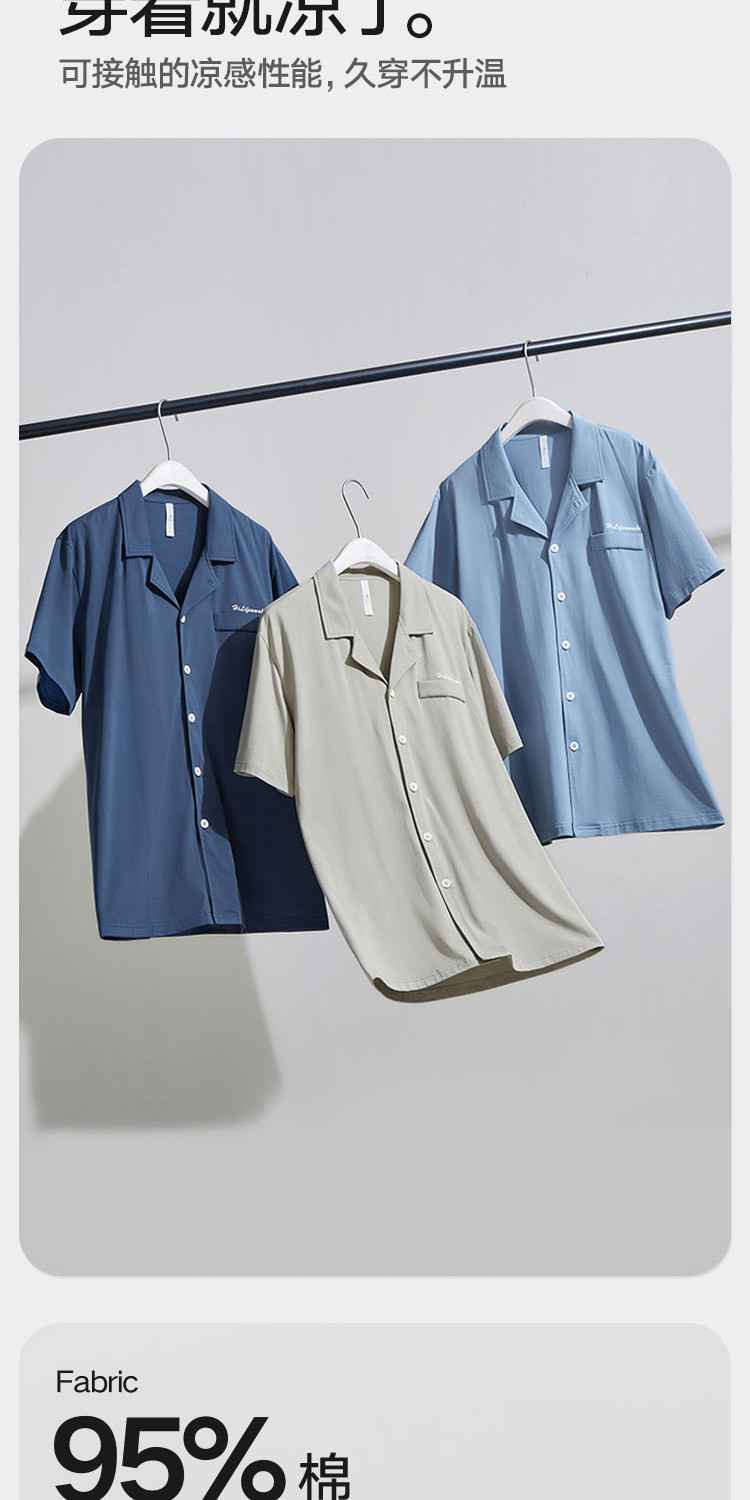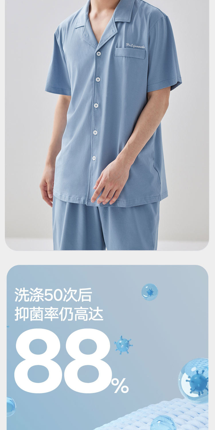 捡漏【95%棉 3A级抑菌】翻领男士睡衣男夏季短款家居服套装 217690