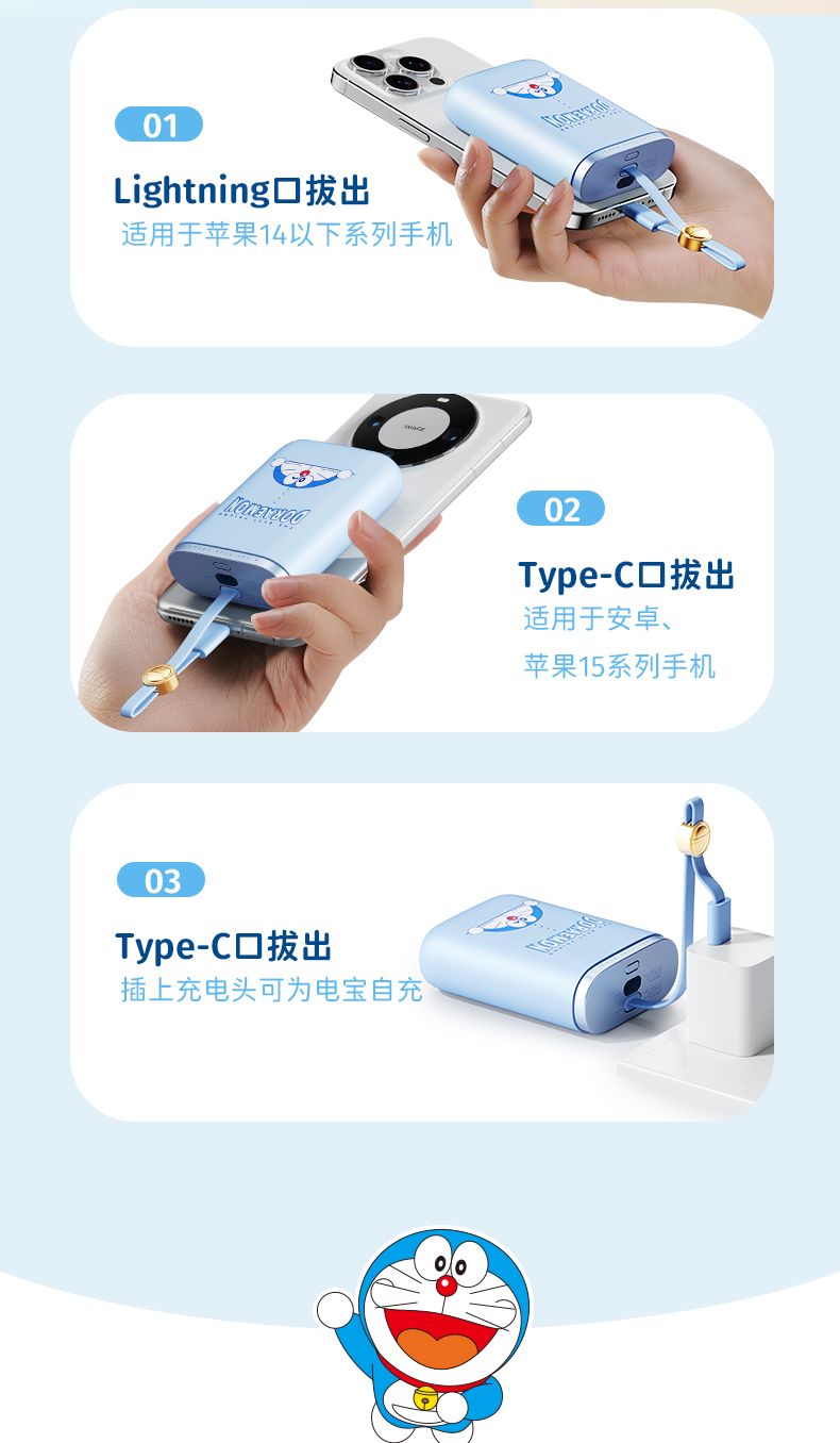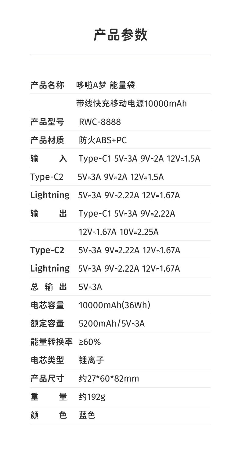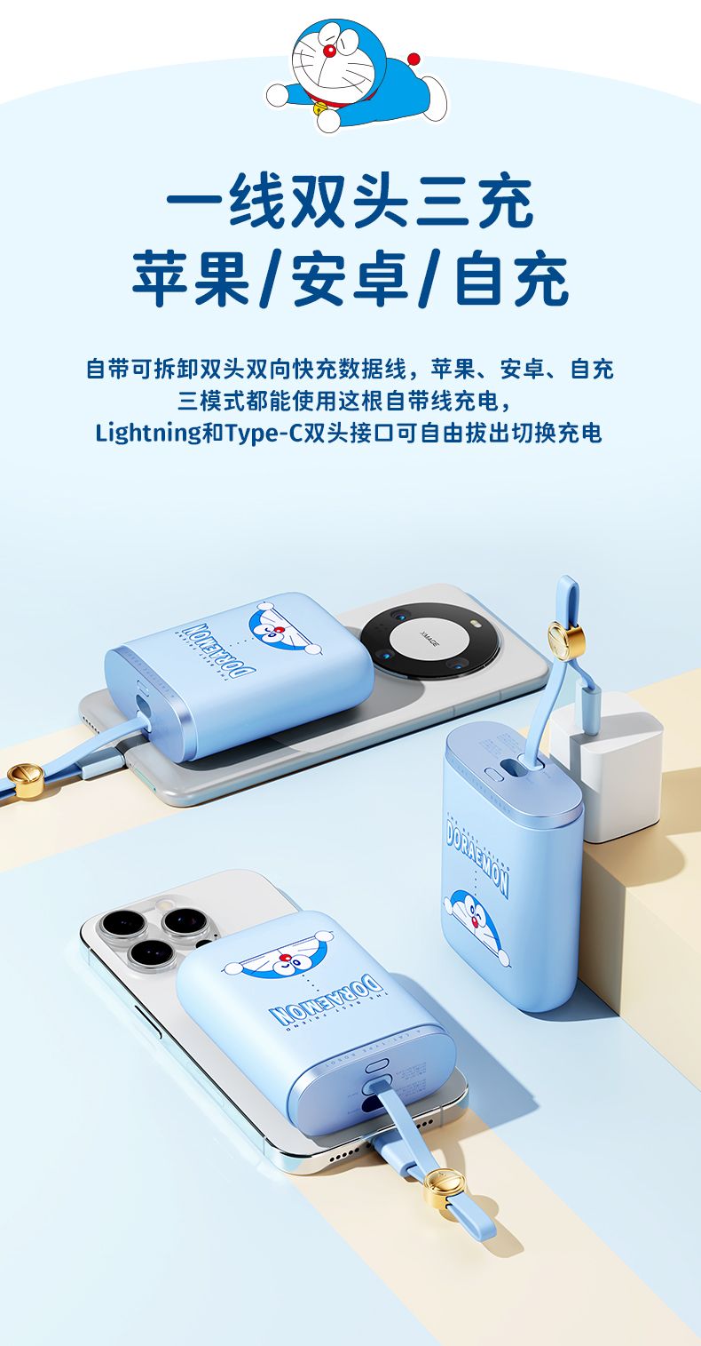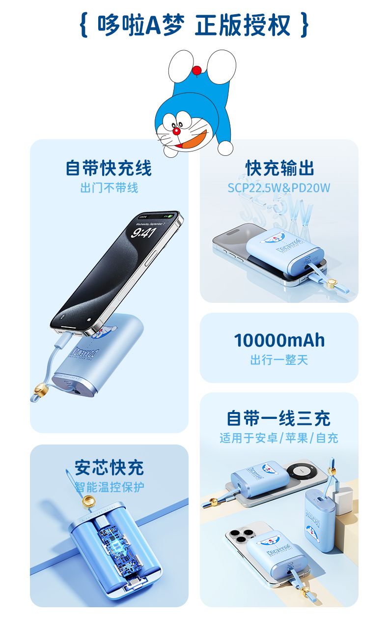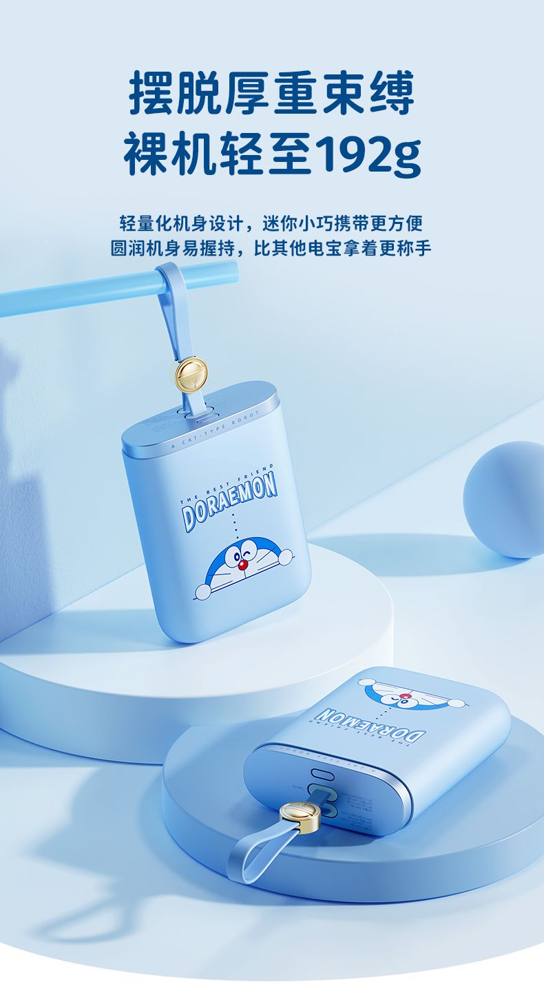 商品名称:ROCK 哆啦A梦 能量袋带线快充移动电源10000mAh