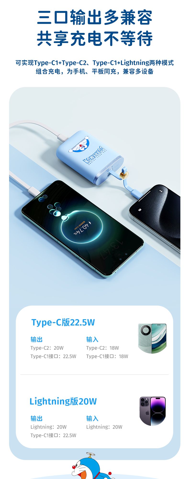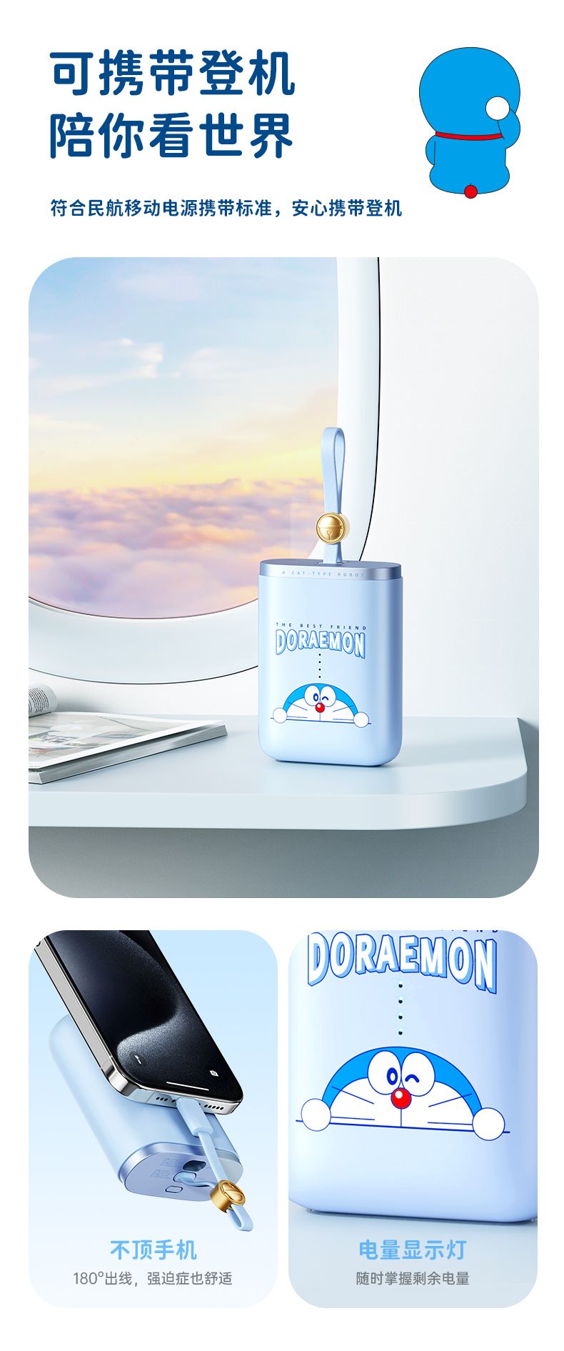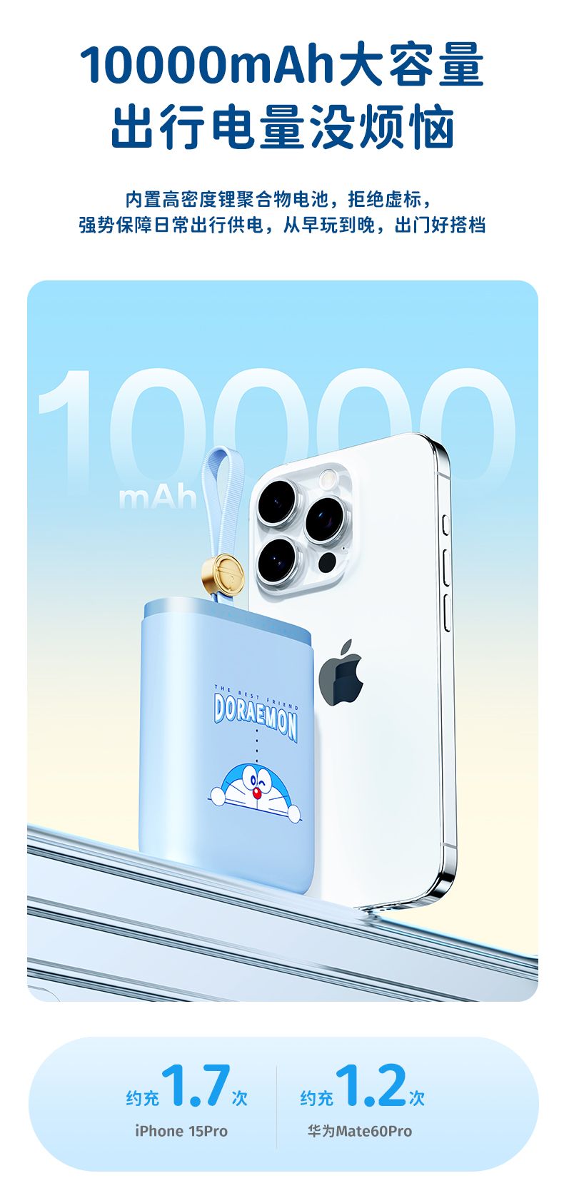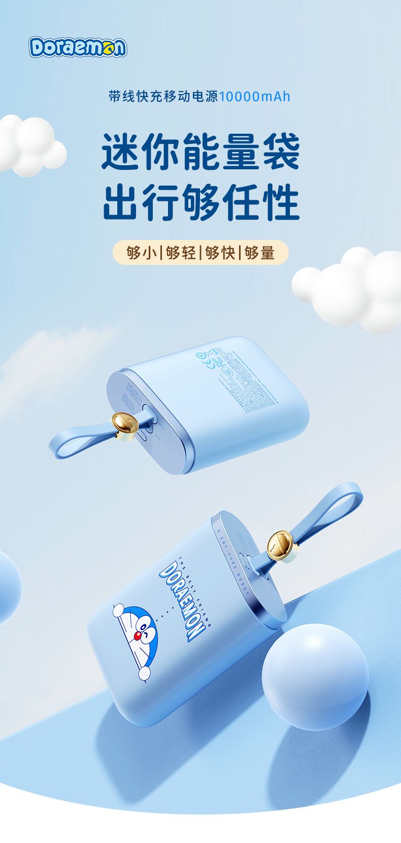 商品名称:ROCK 哆啦A梦 能量袋带线快充移动电源10000mAh