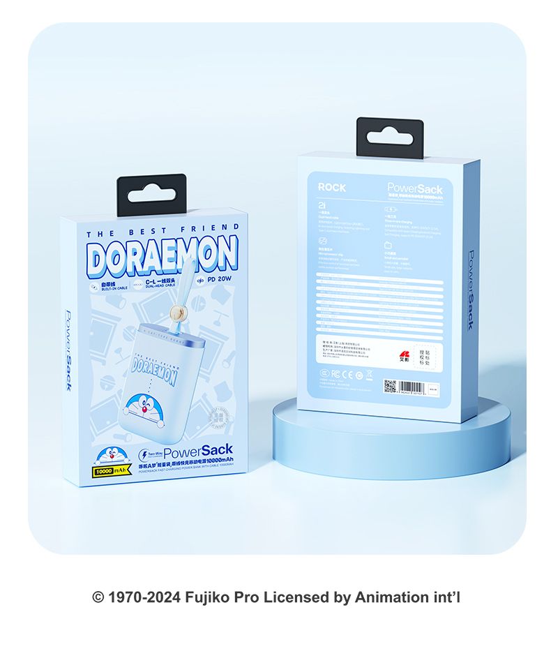 ROCK 哆啦A梦 能量袋带线快充移动电源10000mAh