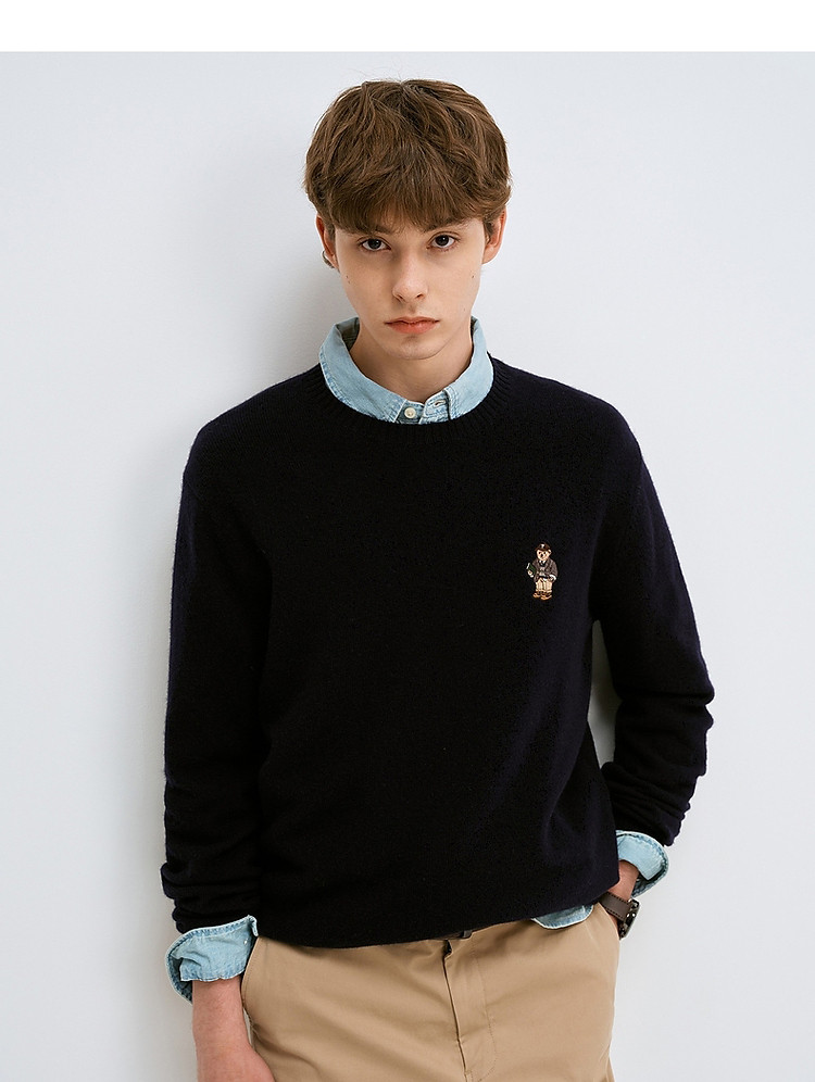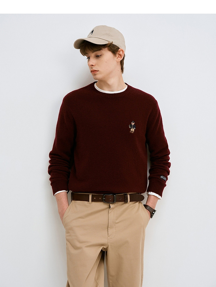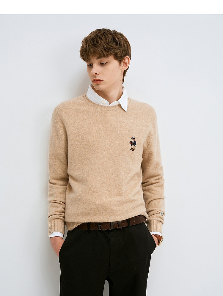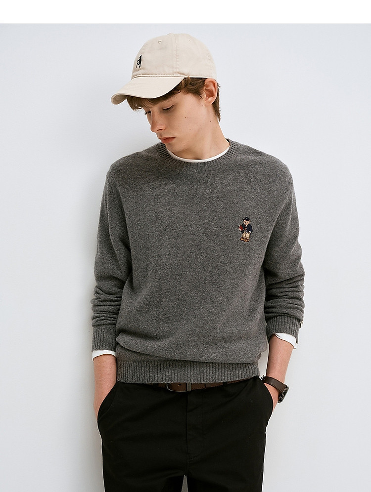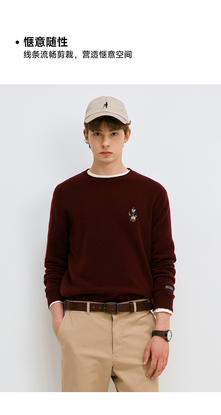 小熊男装简约舒适时尚潮流羊毛衫年春季休闲圆领针织衫毛衣男 007809