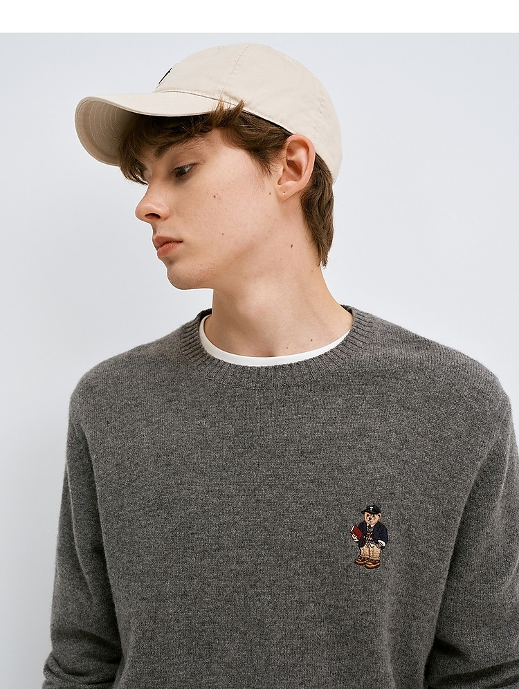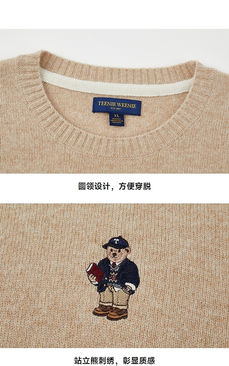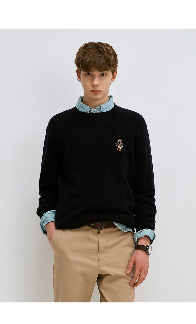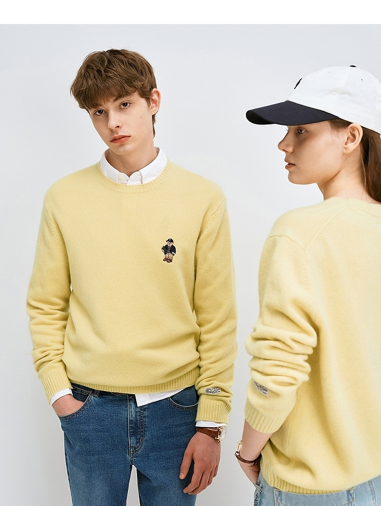 小熊男装简约舒适时尚潮流羊毛衫年春季休闲圆领针织衫毛衣男 007809
