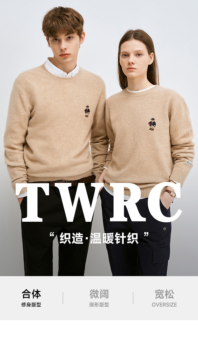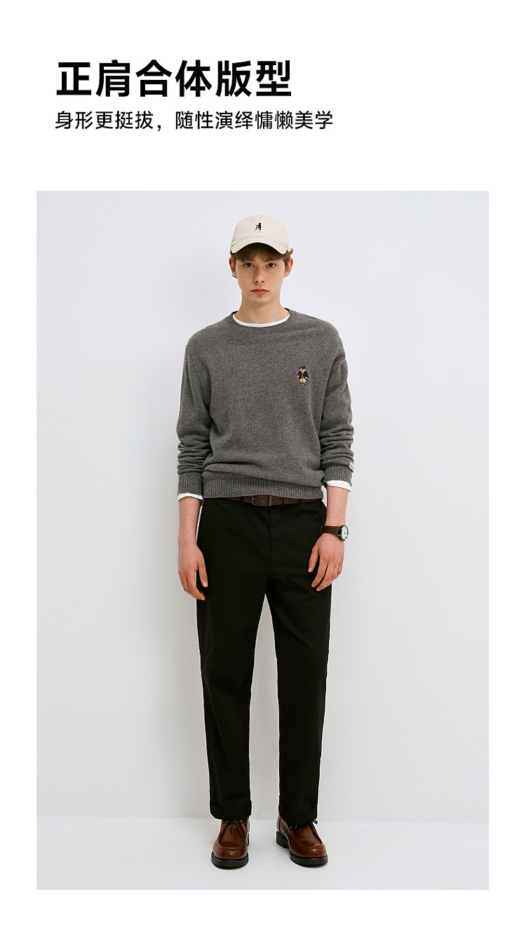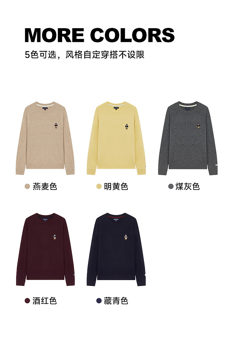 商品名称:小熊男装简约舒适时尚潮流羊毛衫年春季休闲圆领针织衫毛衣男 007809