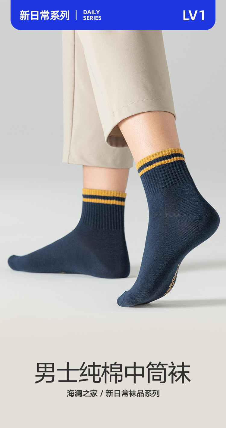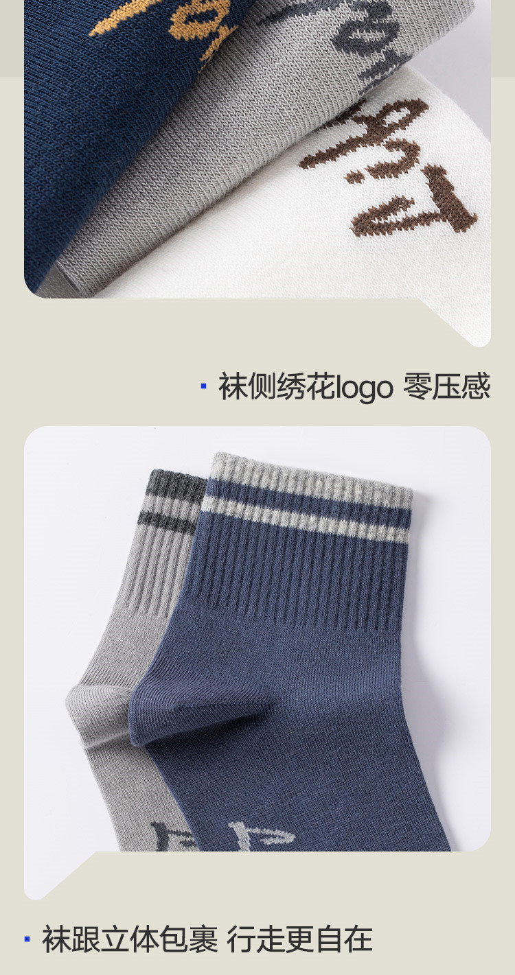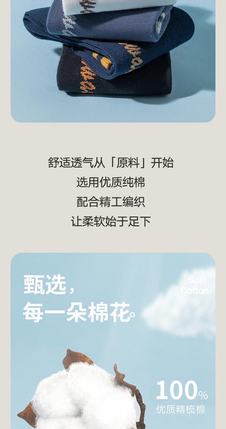 商品名称:【100%棉 3A级抑菌】6双装透气吸汗中筒男士袜子男防臭 718170