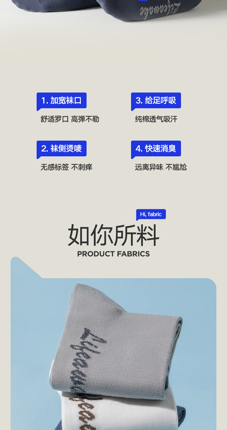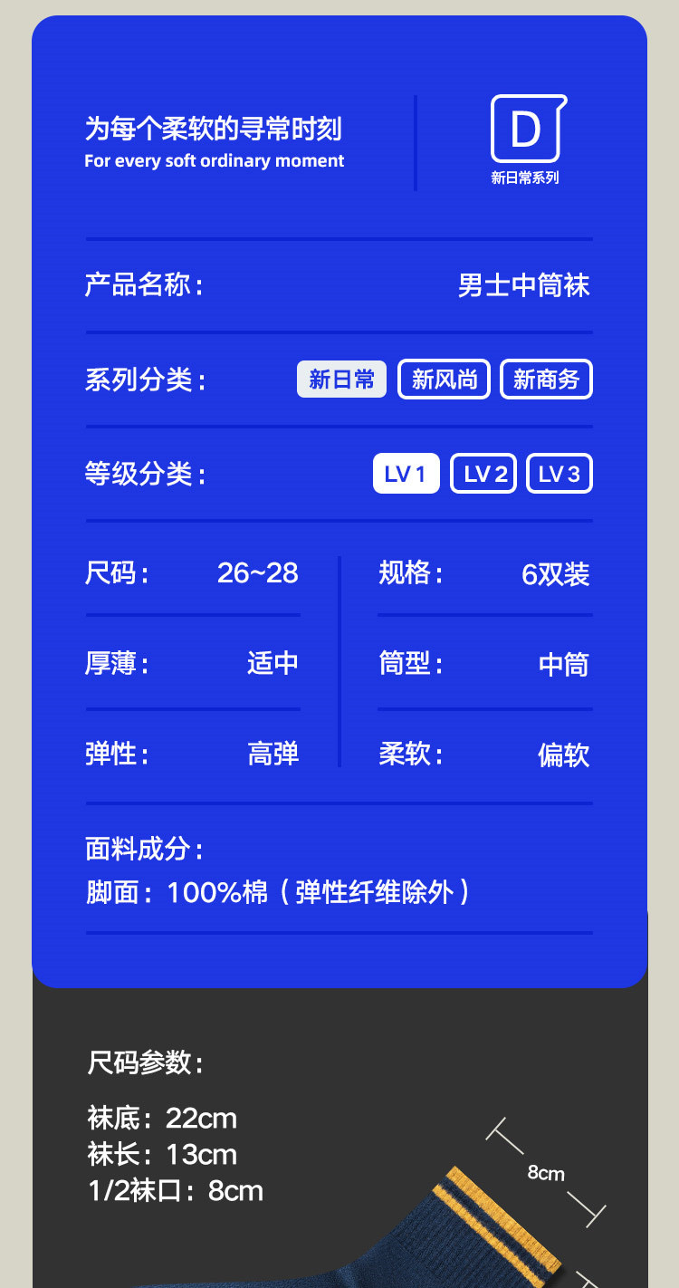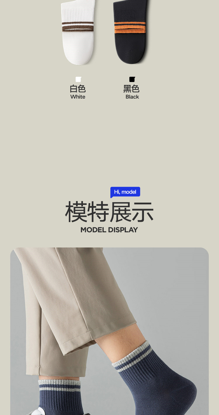 商品名称:【100%棉 3A级抑菌】6双装透气吸汗中筒男士袜子男防臭 718170