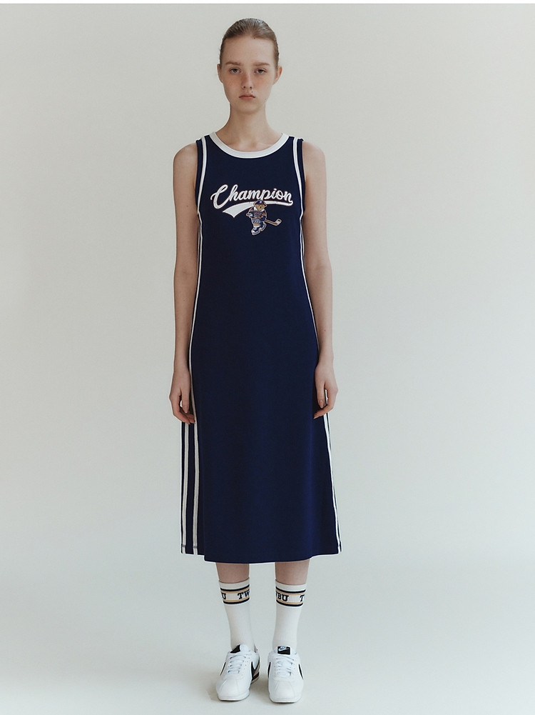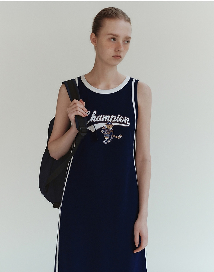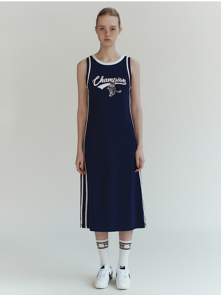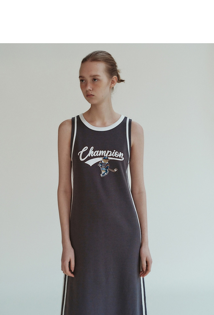 商品名称:小熊女装休闲运动无袖圆领背心长款连衣裙 977345