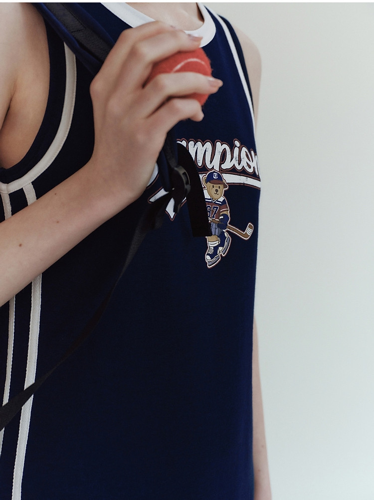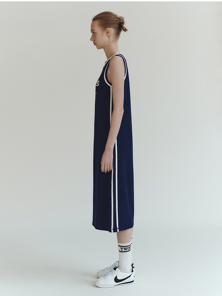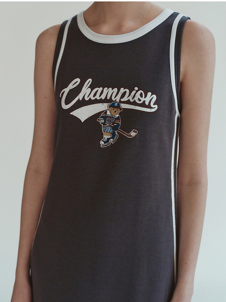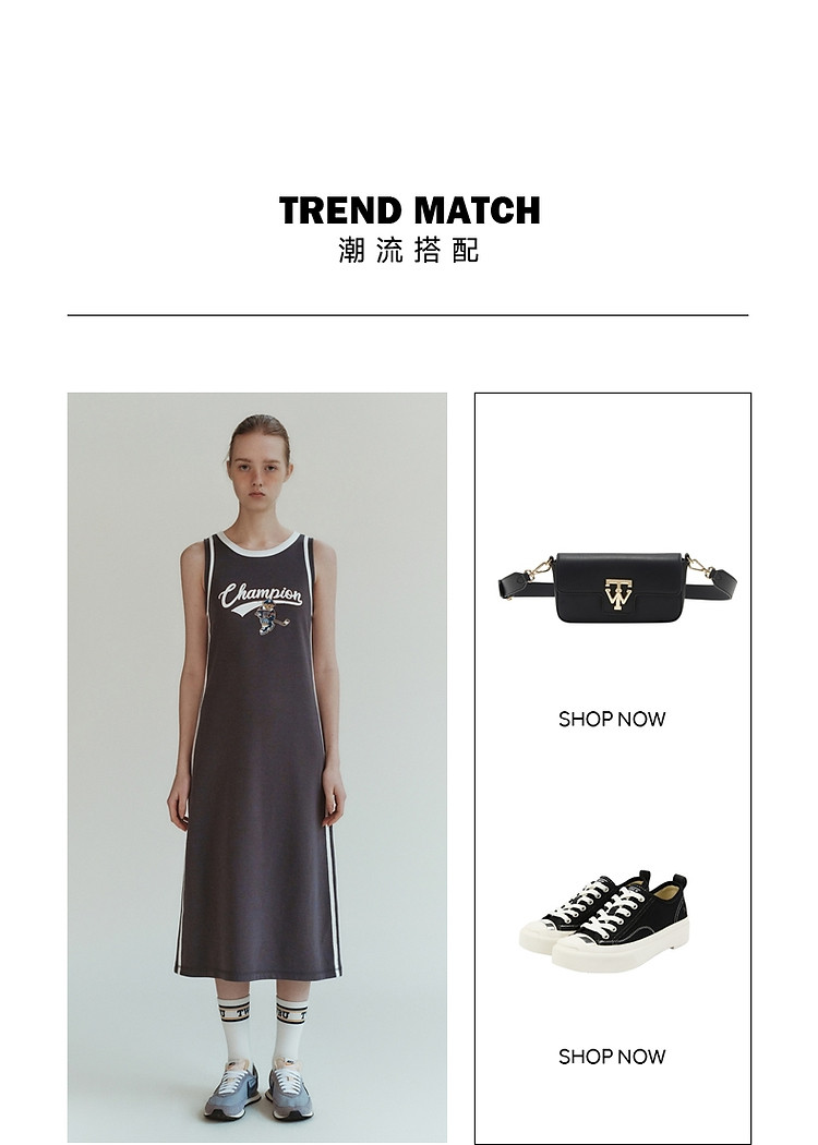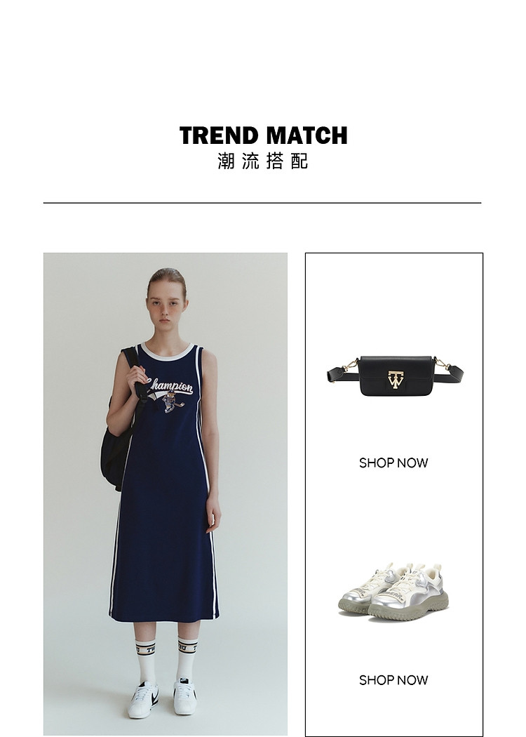 商品名称:小熊女装休闲运动无袖圆领背心长款连衣裙 977345
