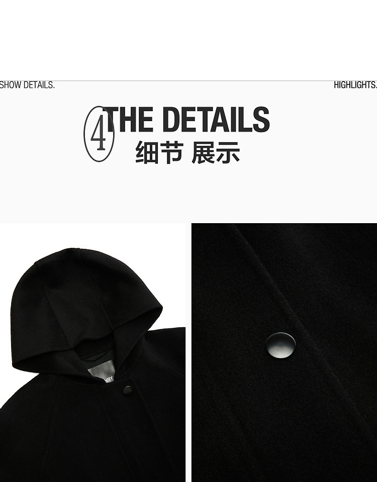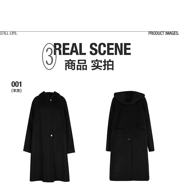 商品名称:冬呢大衣宽松连帽H型外套女 196619