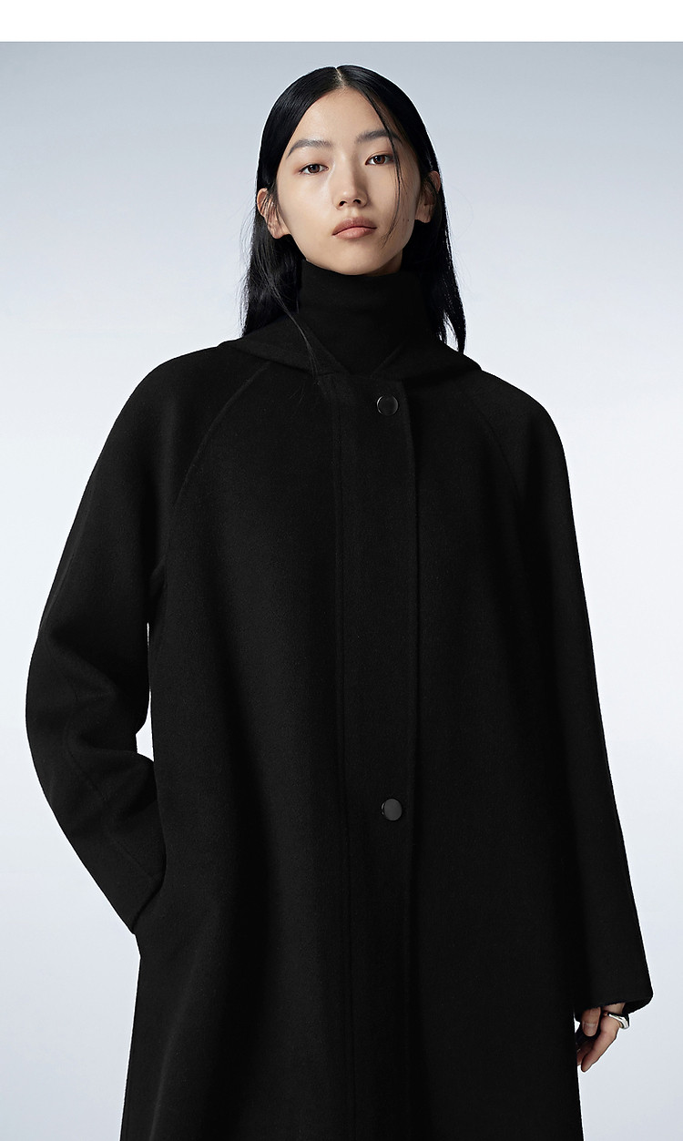冬呢大衣宽松连帽H型外套女 196619