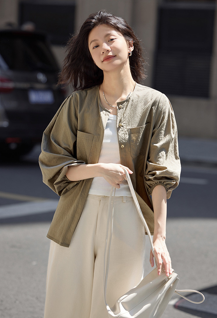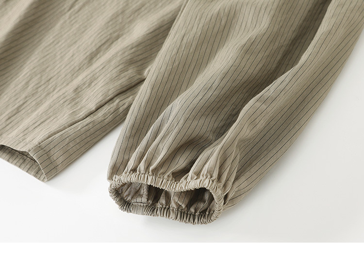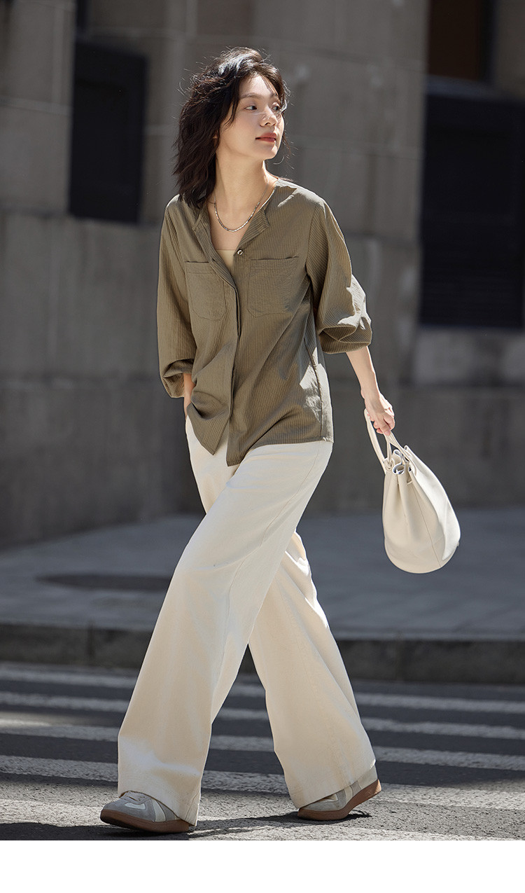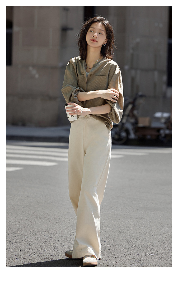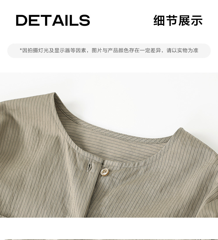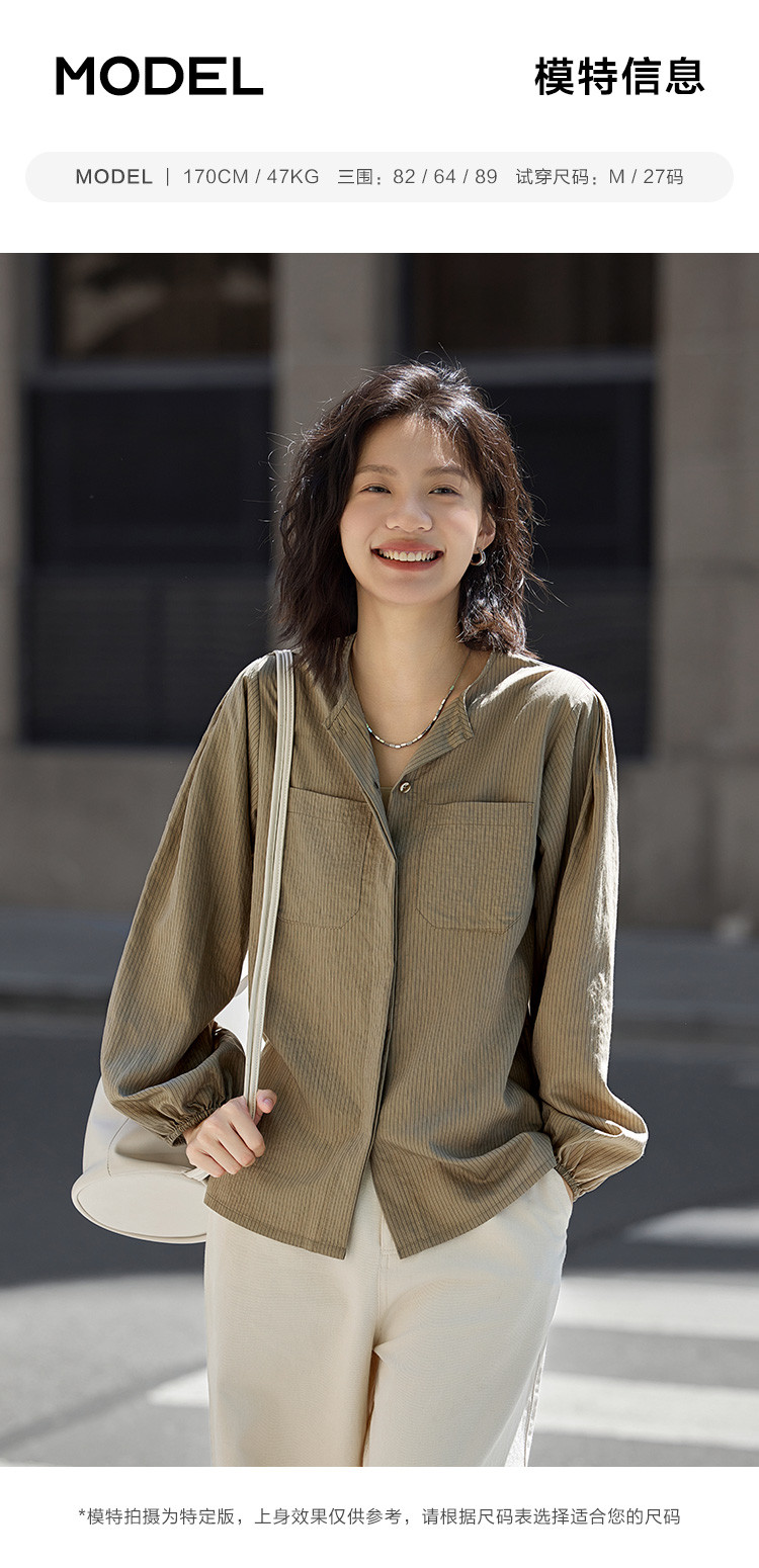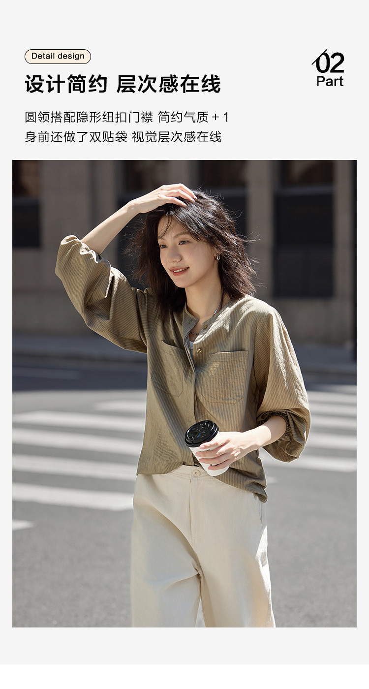 商品名称:【圆领卡其条纹衬衫】秋复古休闲气质简约通勤出游衬衫 297922