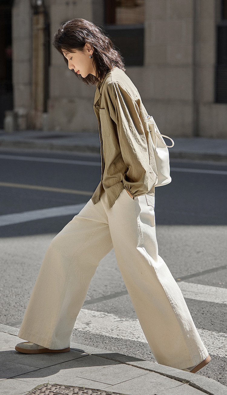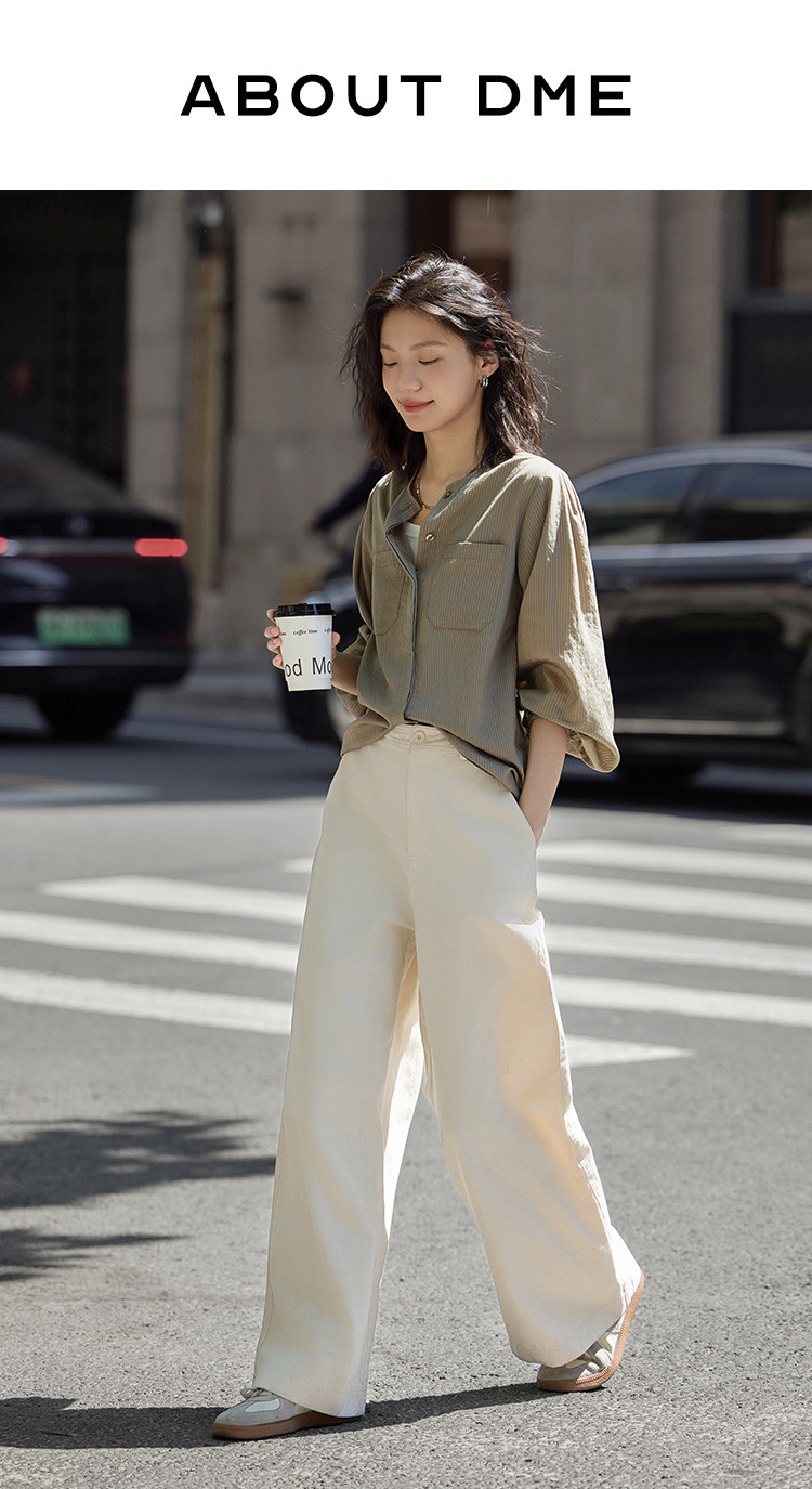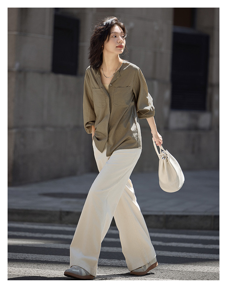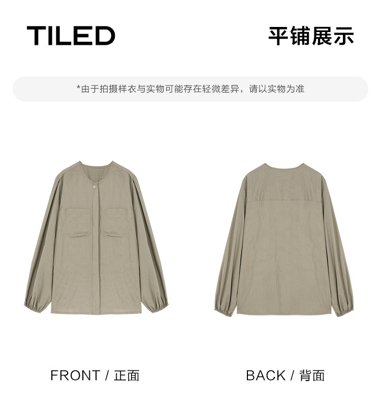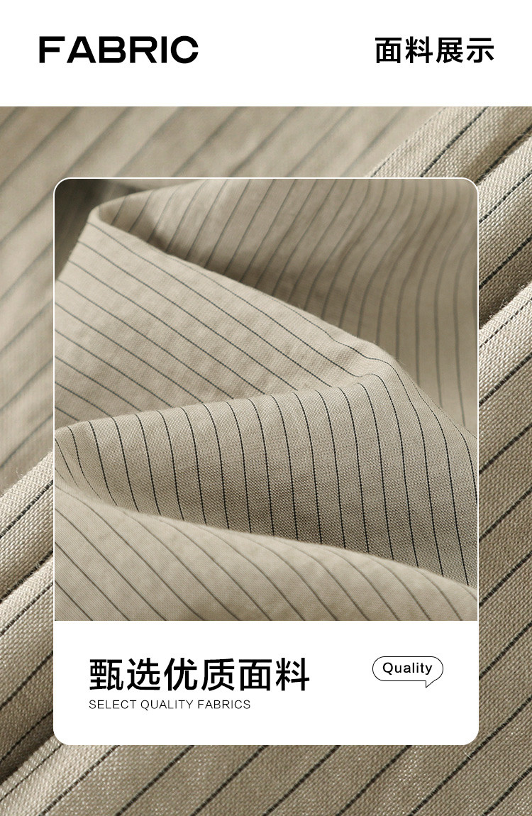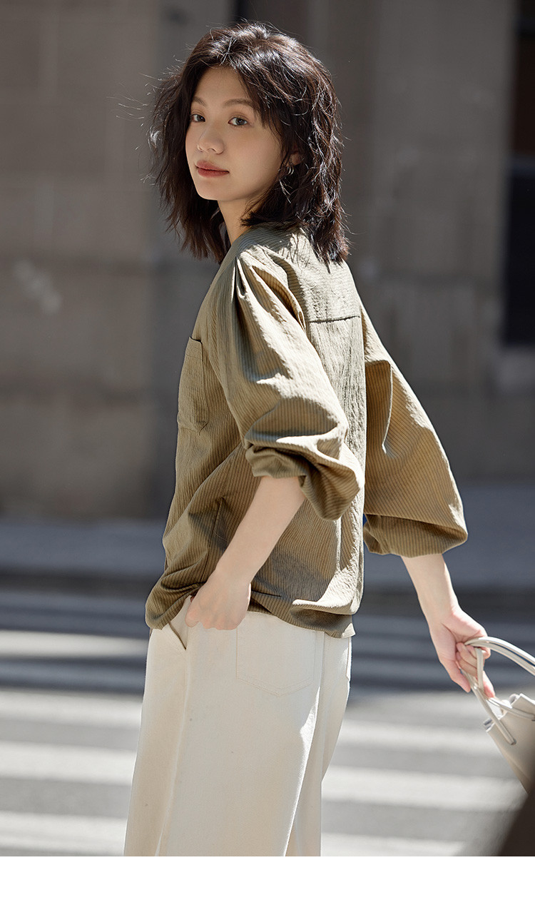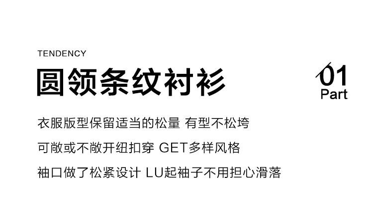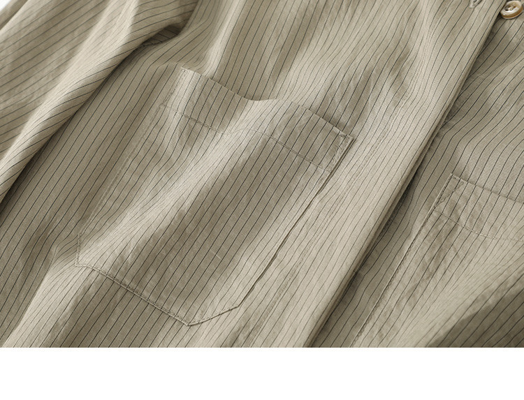 商品名称:【圆领卡其条纹衬衫】秋复古休闲气质简约通勤出游衬衫 297922