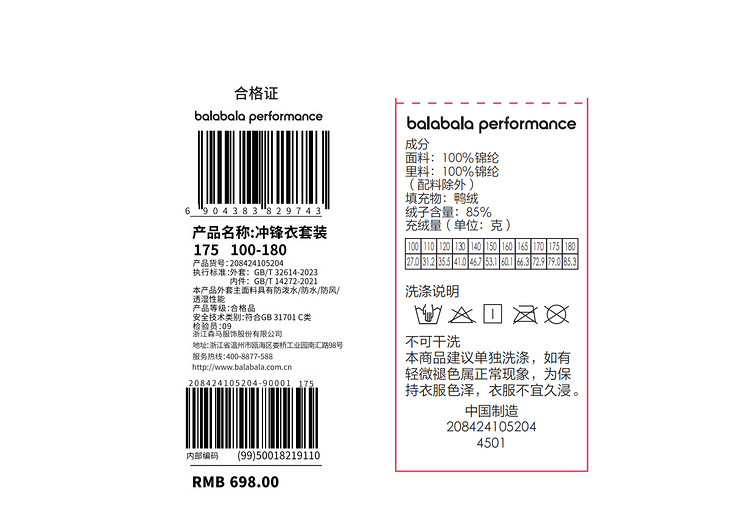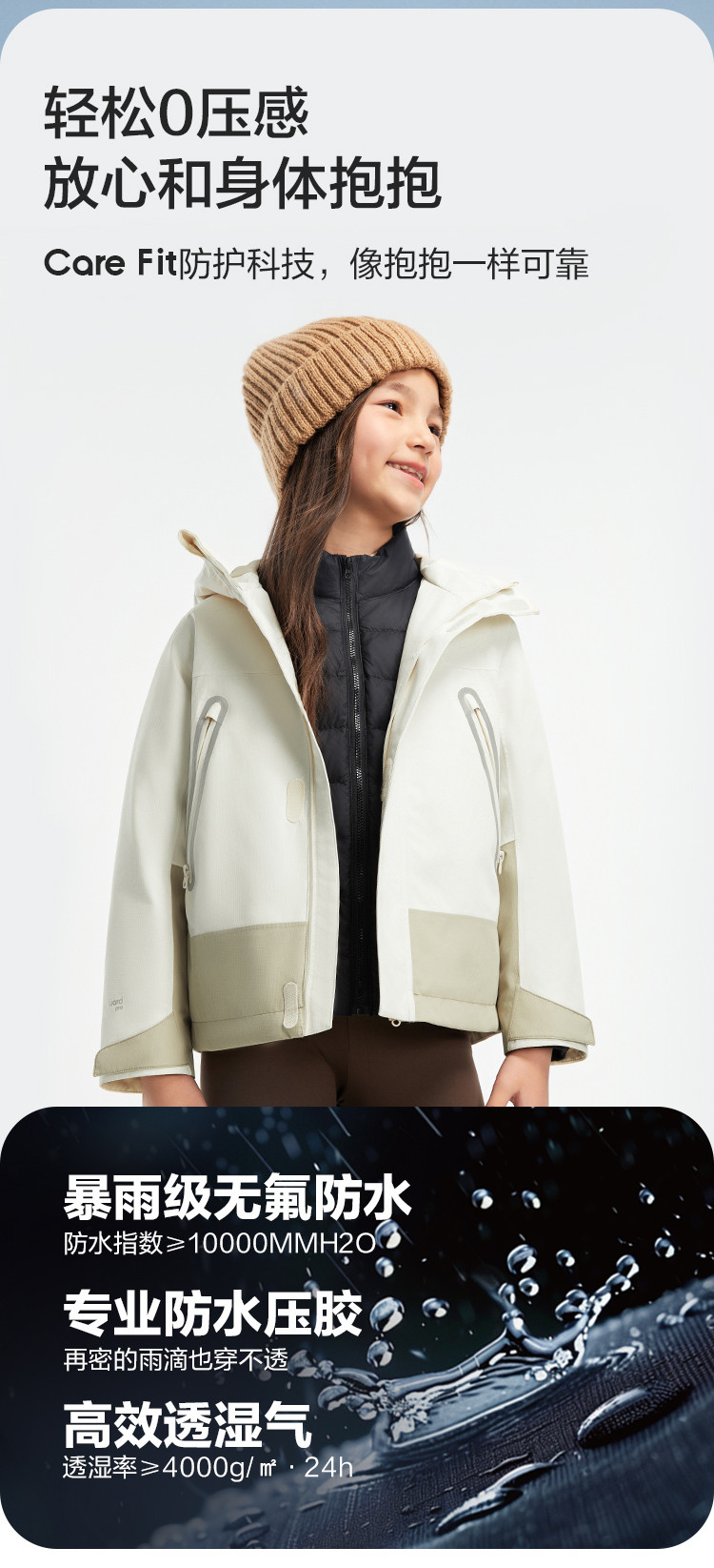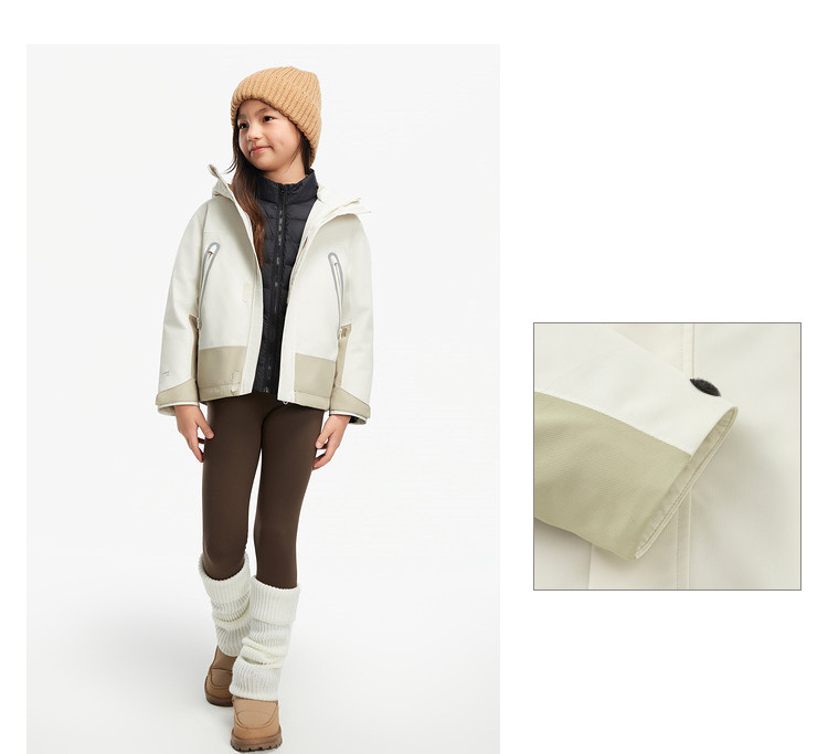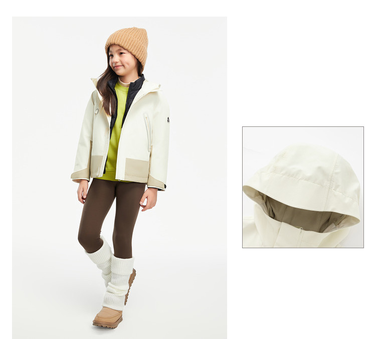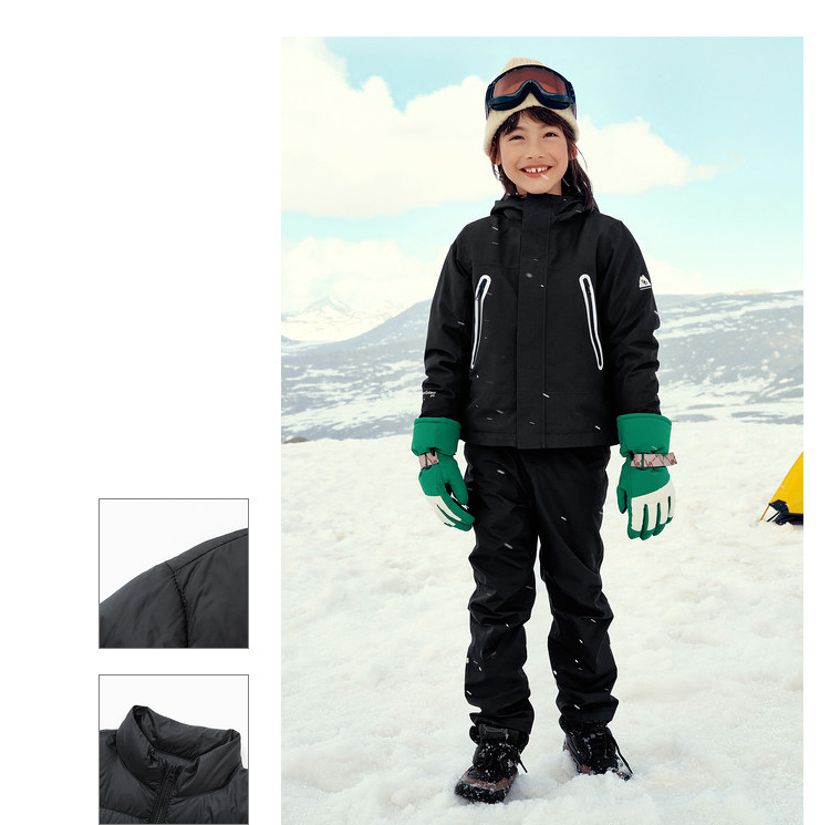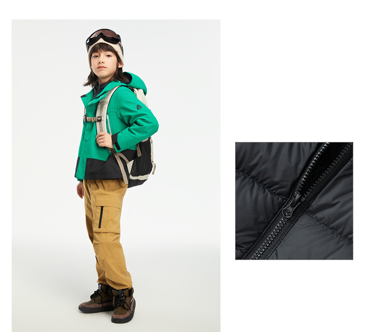 商品名称:防风防雨三合一两件套冲锋衣儿童羽绒服小童中大童冬款连帽外套 357765