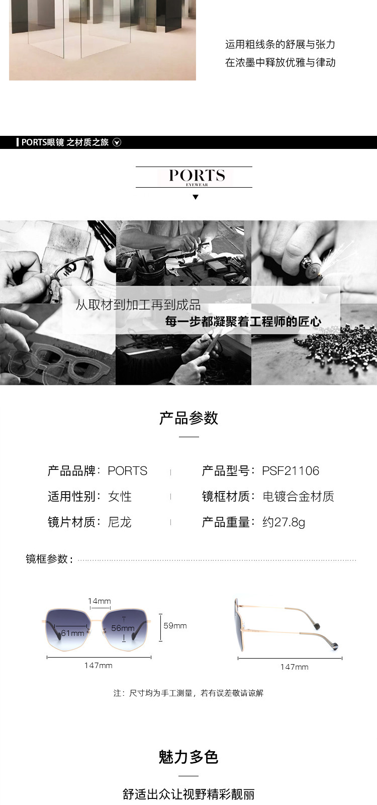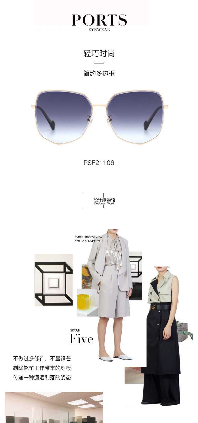 商品名称:PORTS休闲女款轻巧时尚简约多边形太阳镜PSF21106 668426