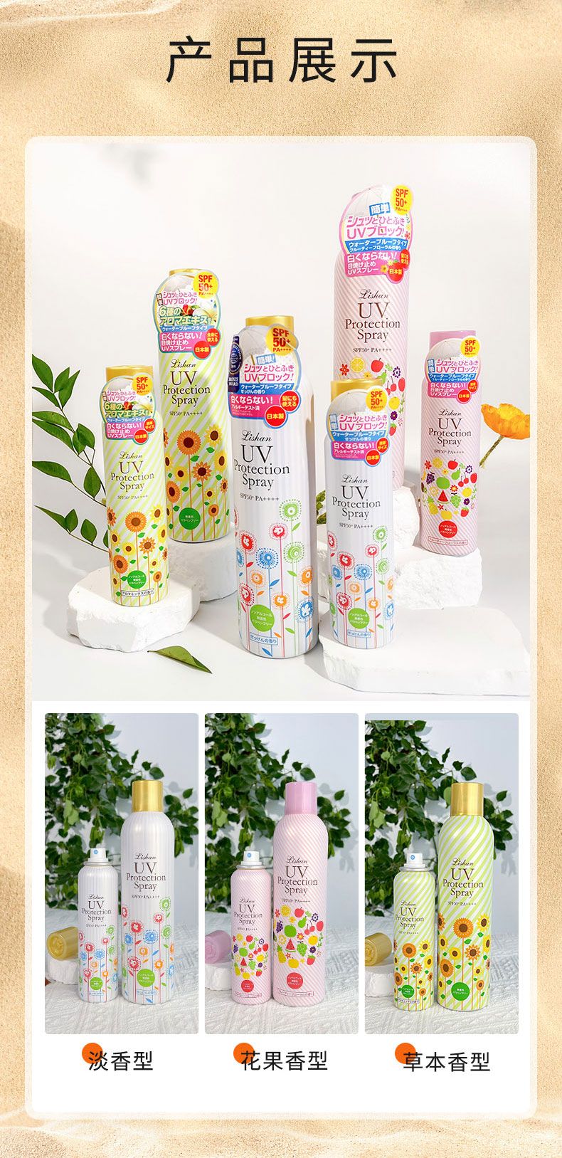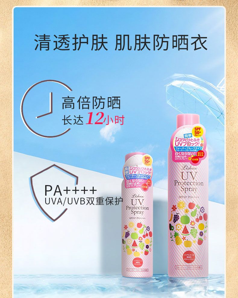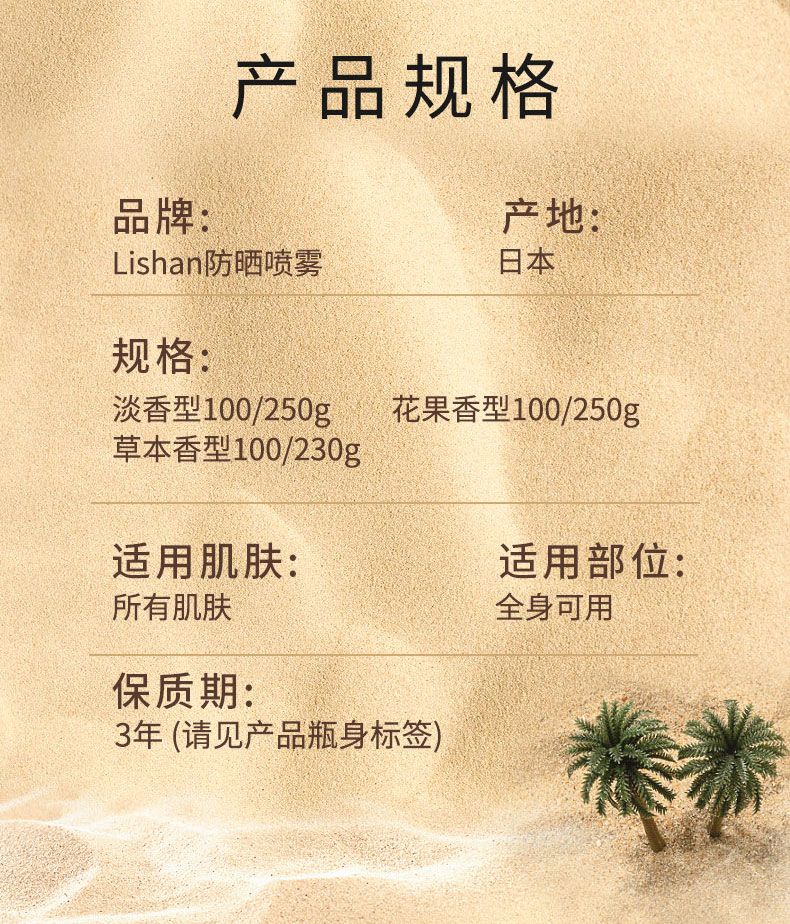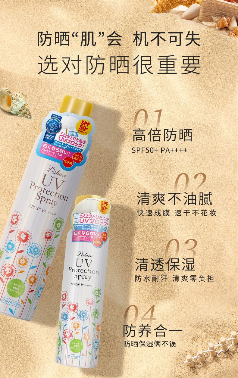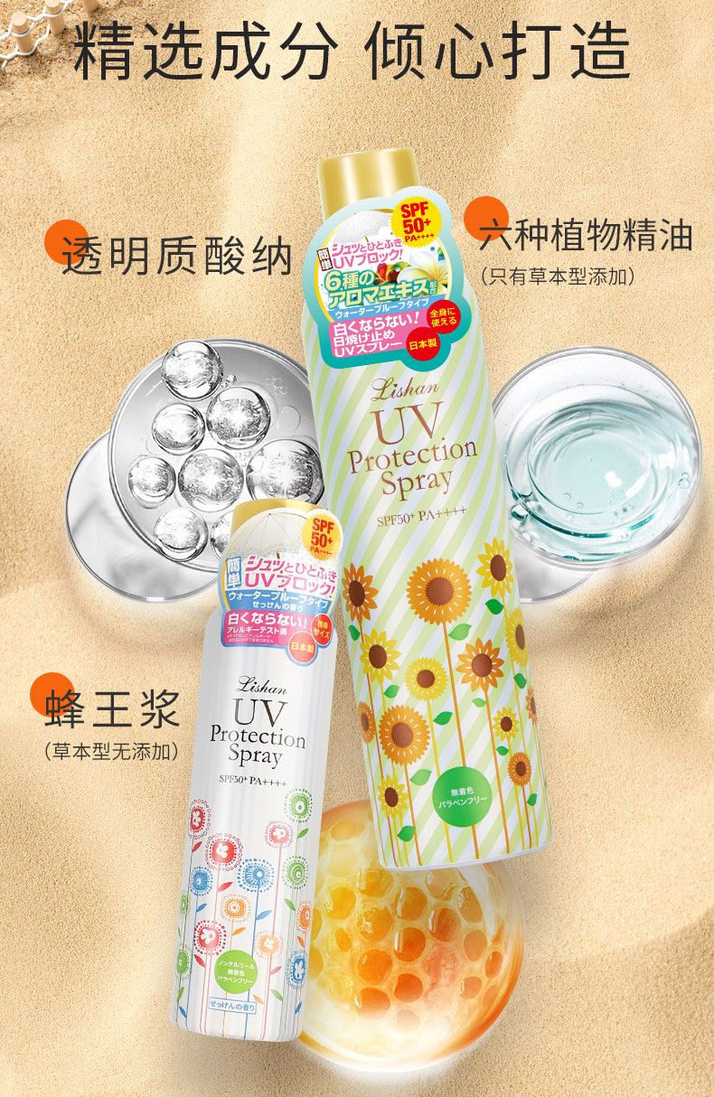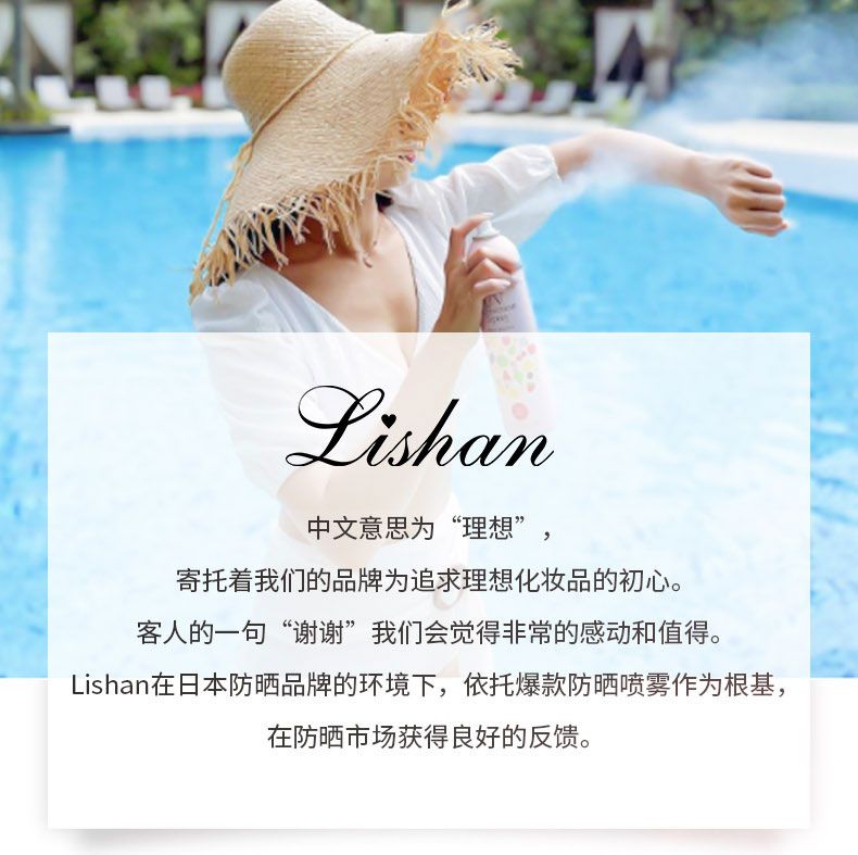 商品名称:lishan 防晒喷雾 100g 高倍防晒