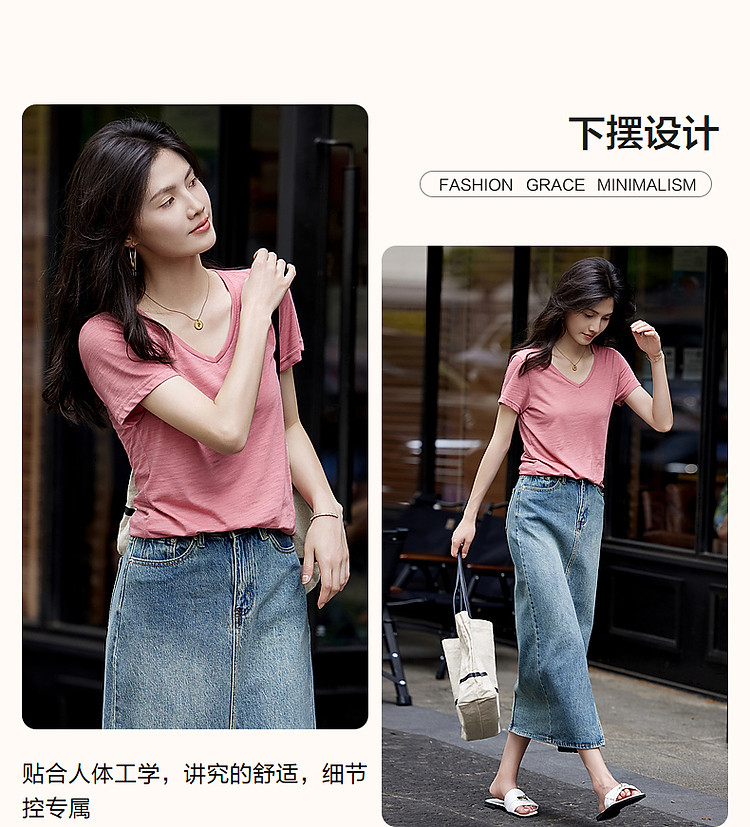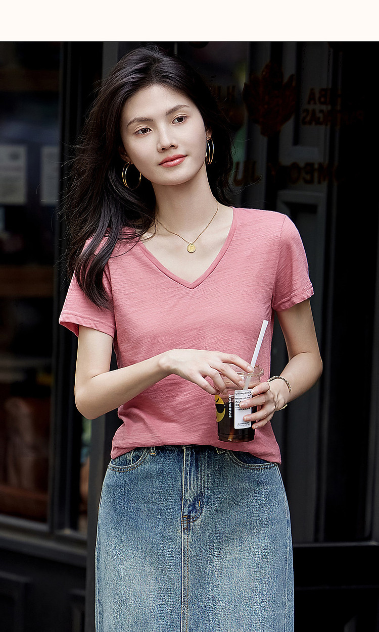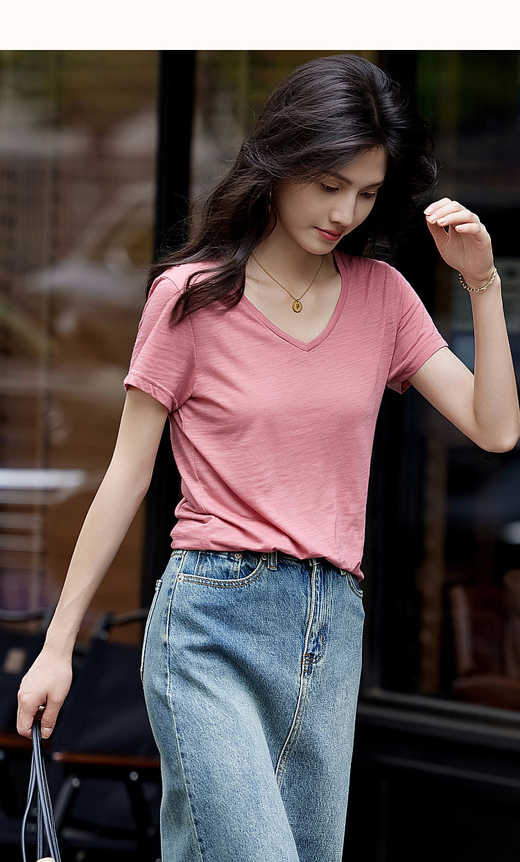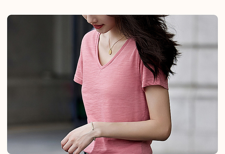 商品名称:【静奢风通勤】夏轻熟风桃心领清凉薄款短袖简约女式t恤 604993