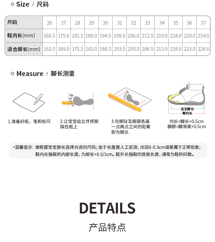 | 尺码 | 鞋内长(mm) | 脚长(mm) |