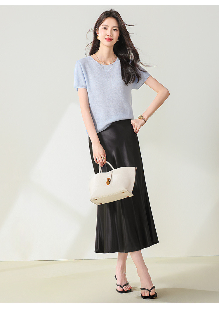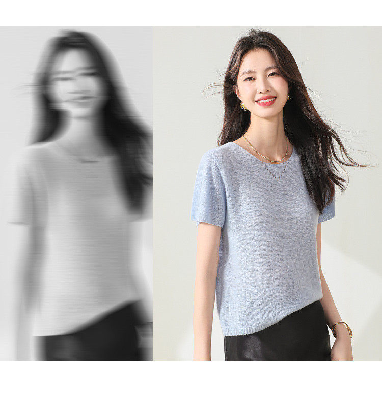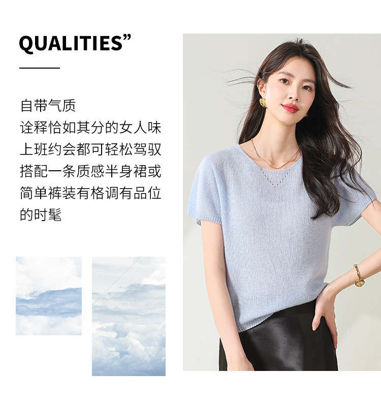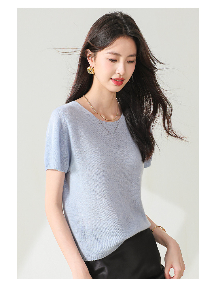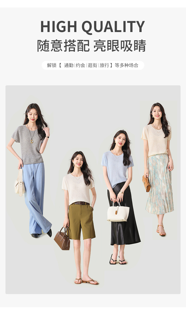 商品名称:【无缝】春装圆领上衣纯色羊毛衫女简约气质短袖女式针织衫T恤 252627