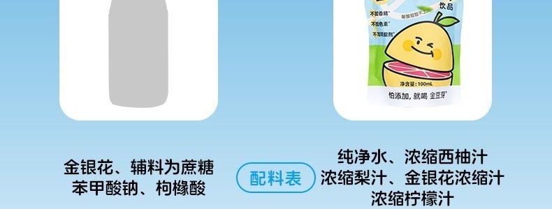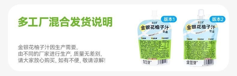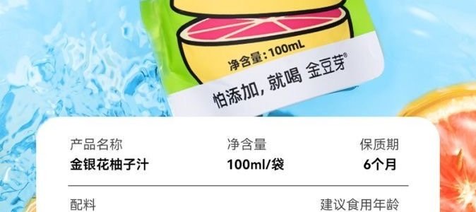 商品名称:金豆芽 金银花柚子汁 100ml*7袋