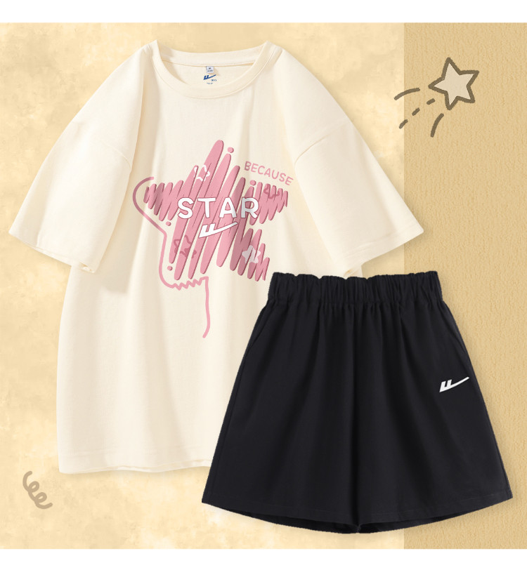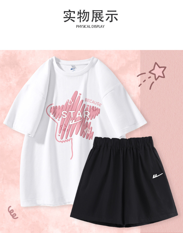 商品名称:【女装】夏季休闲运动套装女宽松T恤+三分短裤纯棉两件套 118611