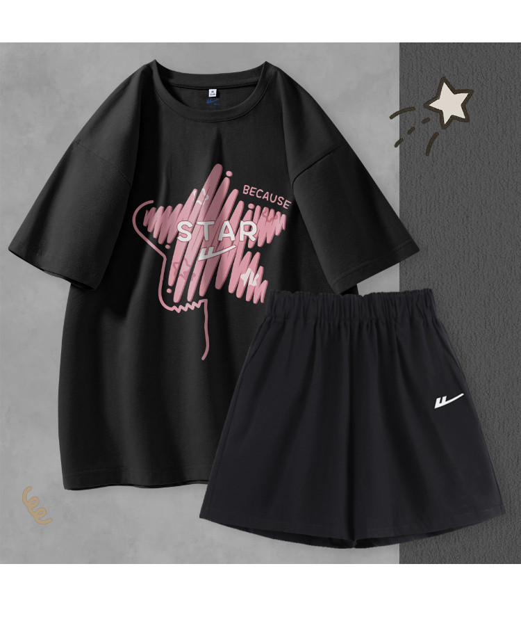 【女装】夏季休闲运动套装女宽松T恤+三分短裤纯棉两件套 118611