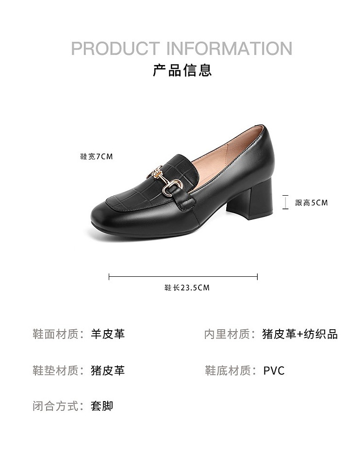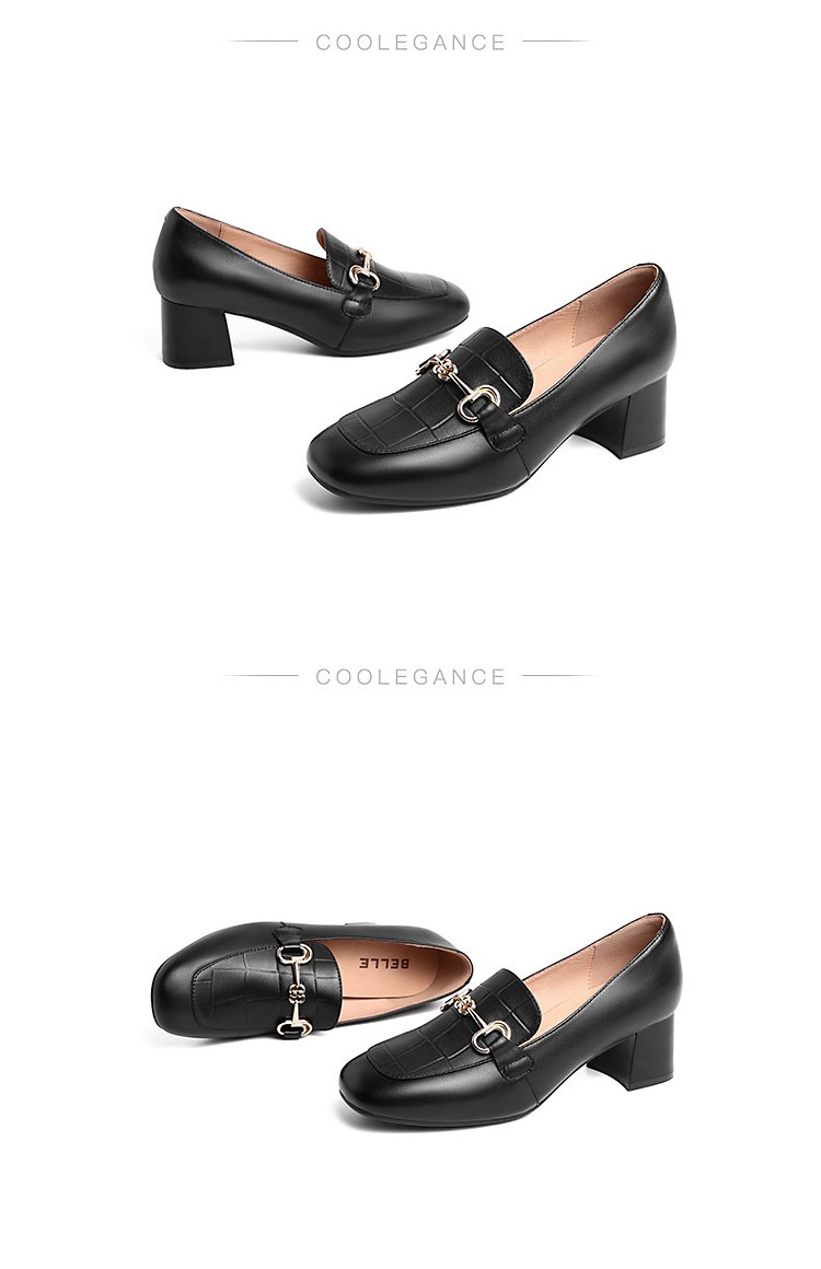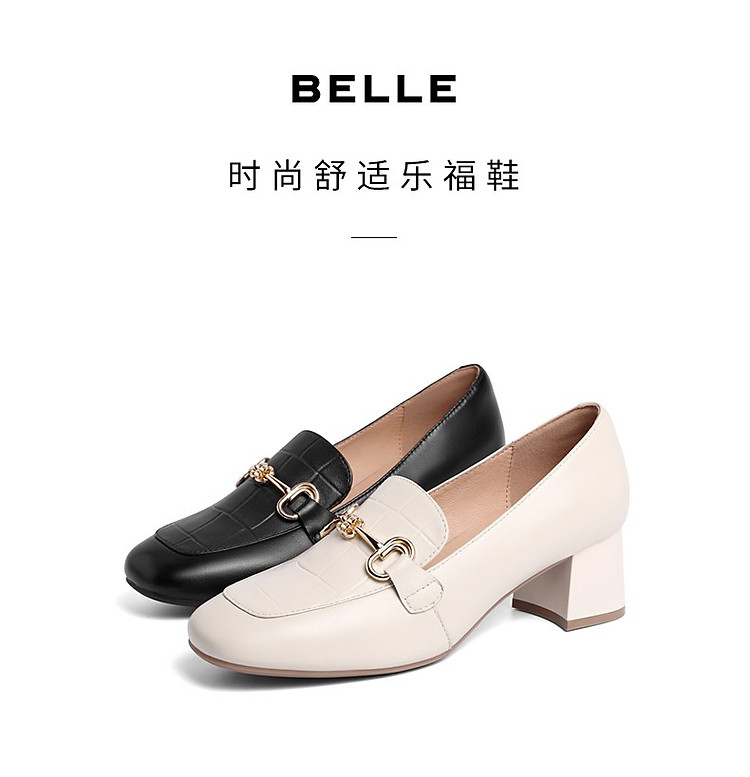 商品名称:【尖货推荐】百丽舒适乐福鞋女春季羊皮革简约百搭通勤高跟单鞋 464474