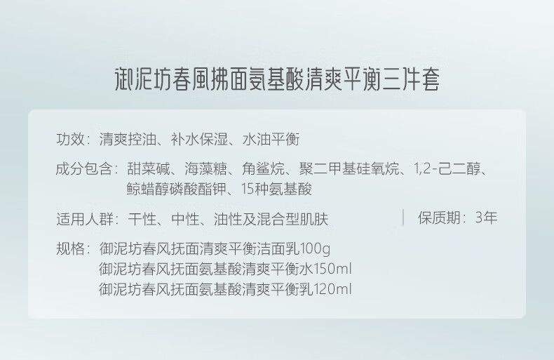 商品名称:御泥坊/ 春风拂面氨基酸清爽平衡三件套 200g