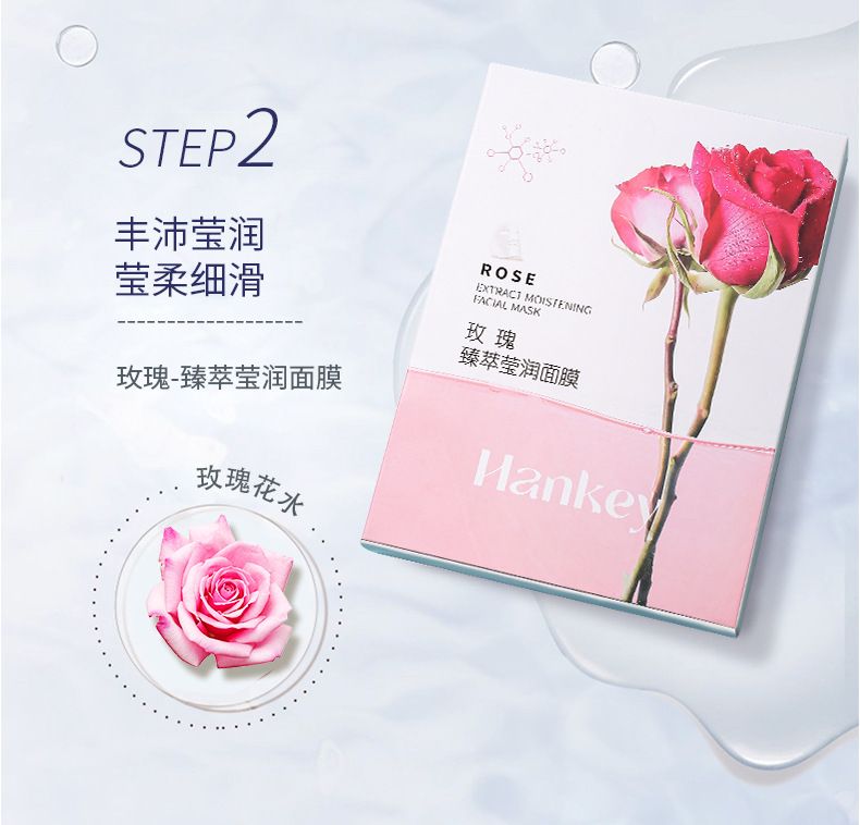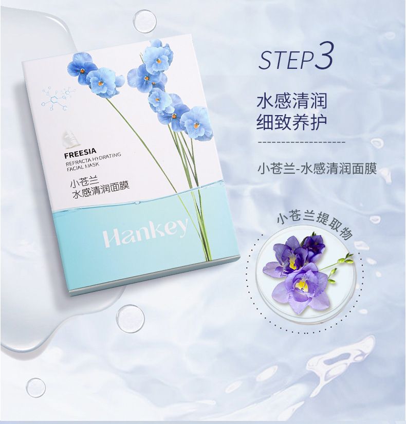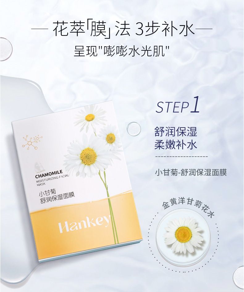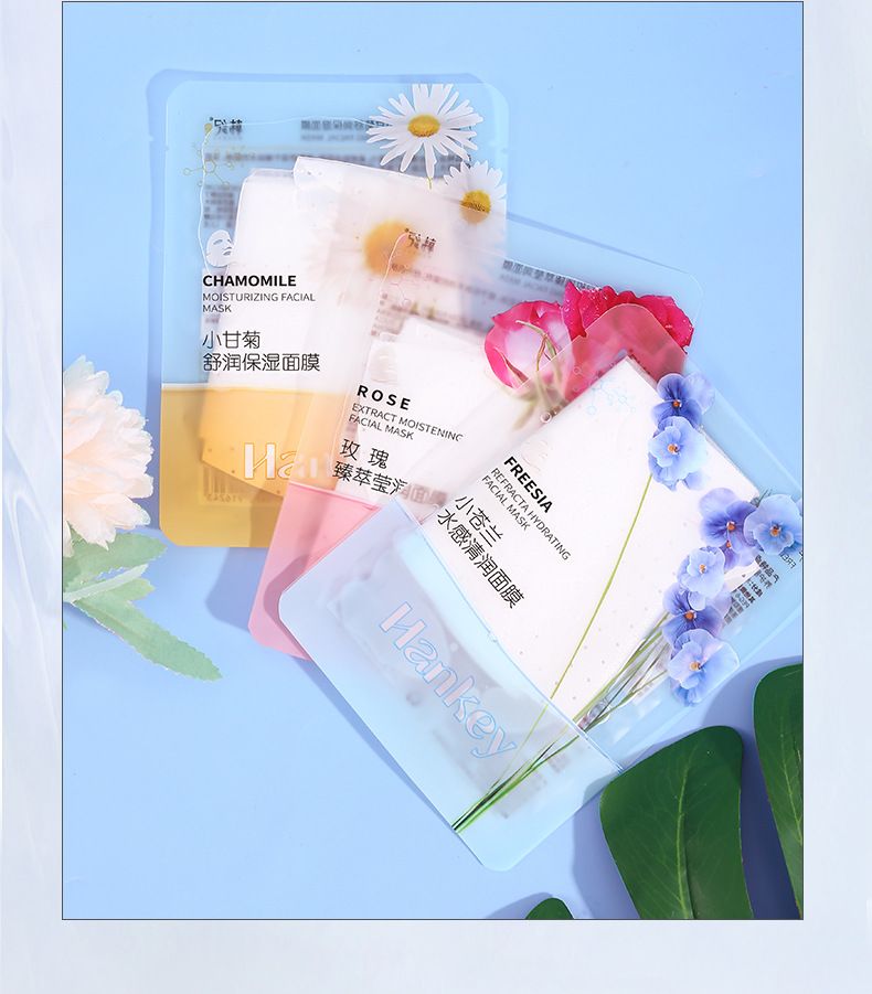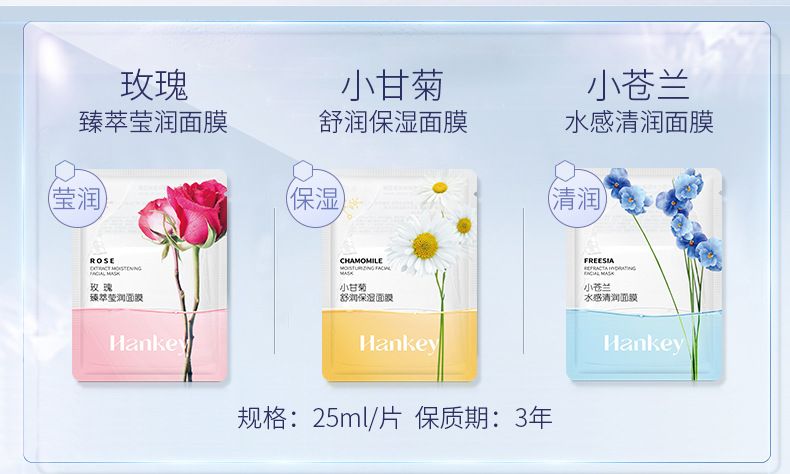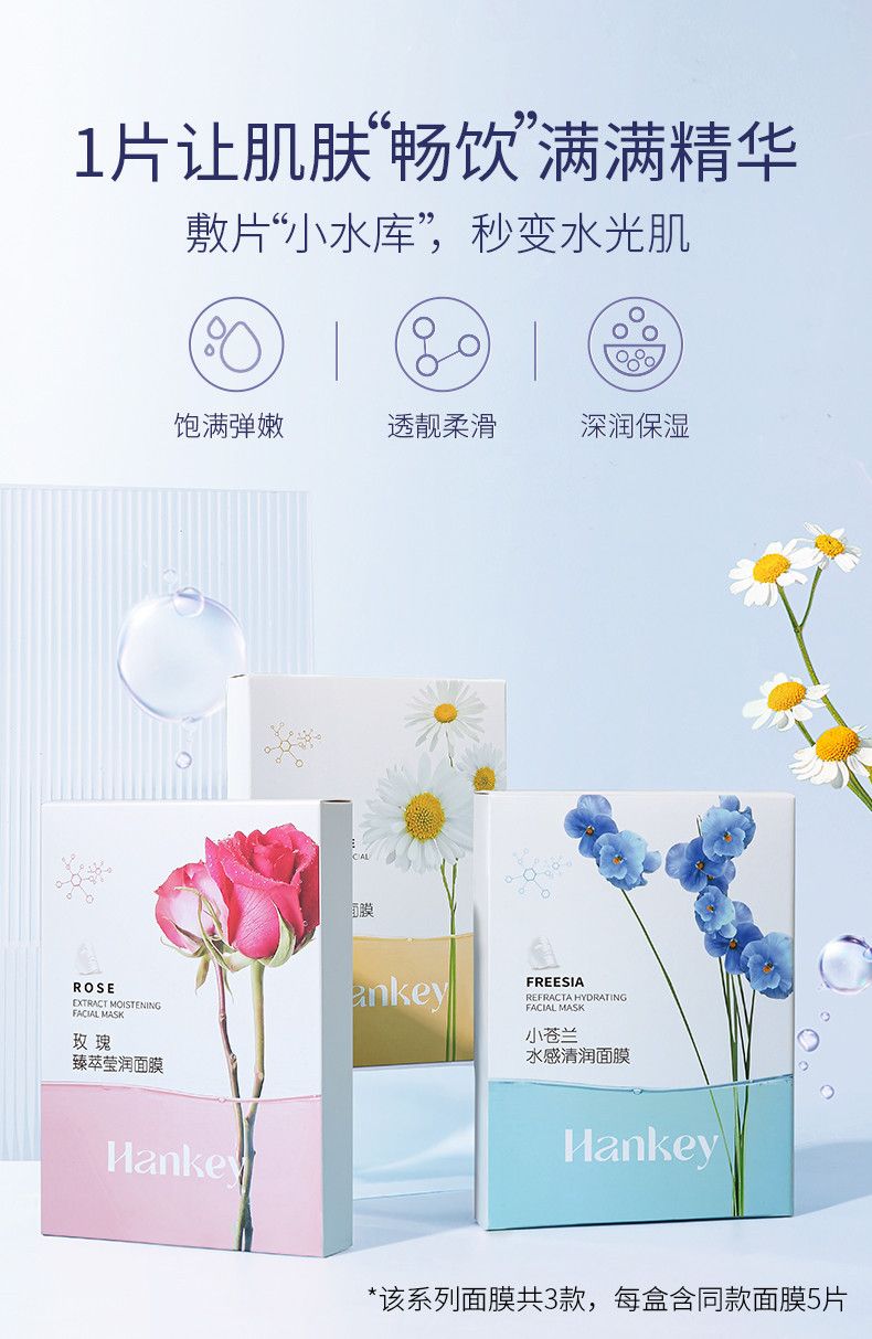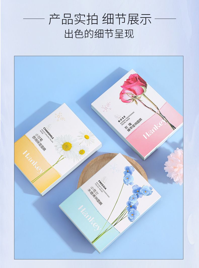 商品名称:Hankey/韩纪 小甘菊/玫瑰/小苍兰水感清润补水保湿面膜5片/盒