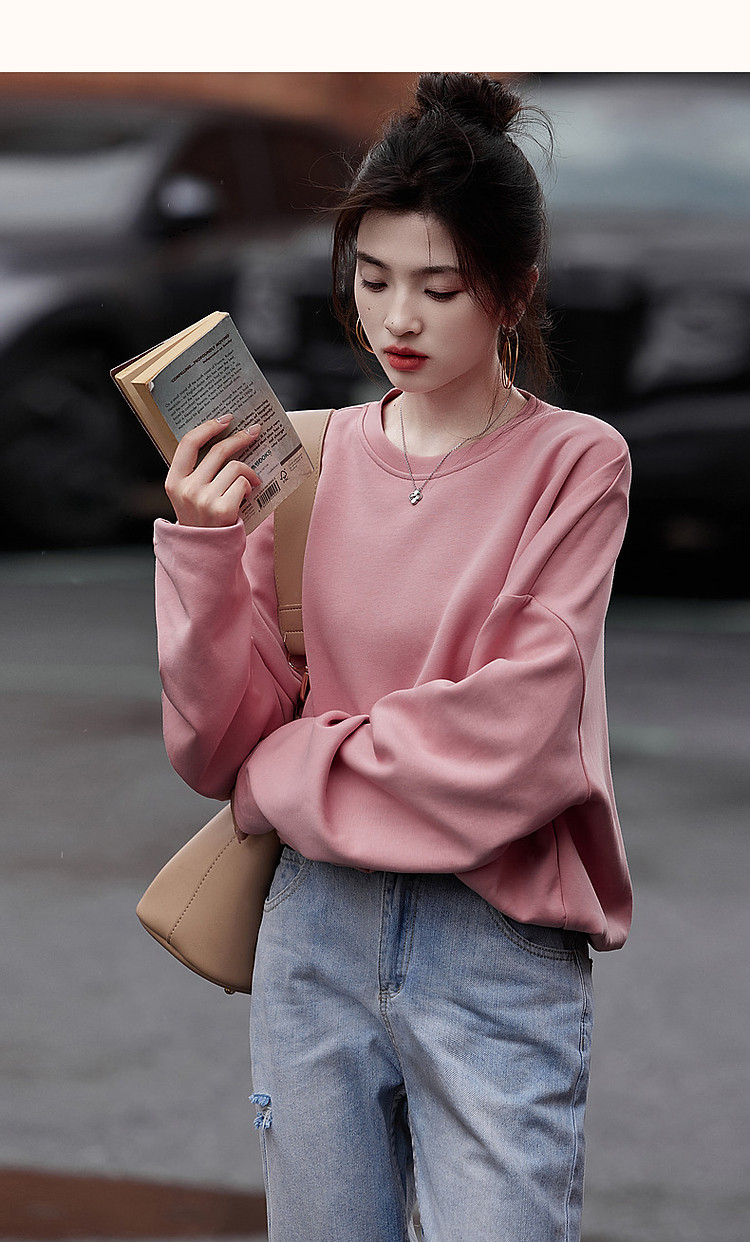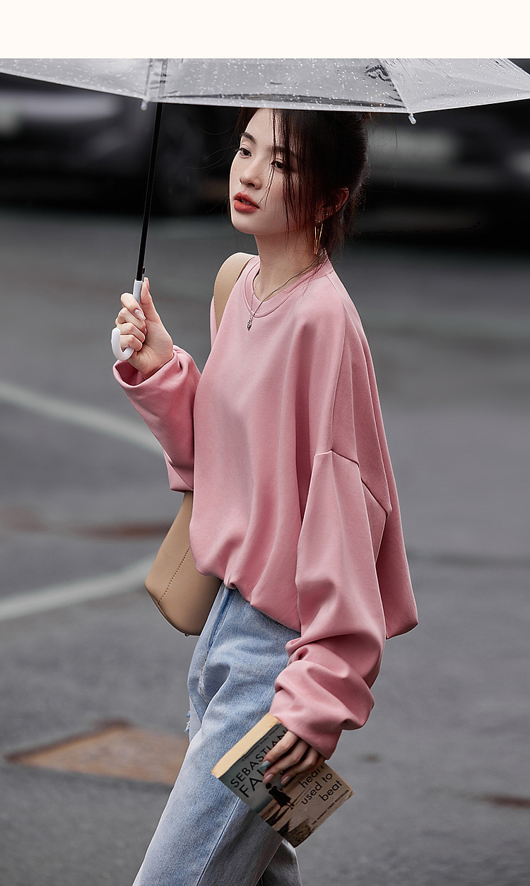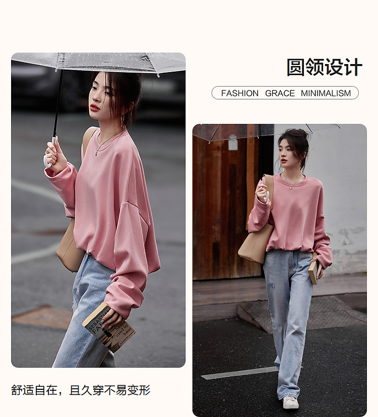 商品名称:【自由之诗】秋简约风280G空气层时髦造型袖藏肉卫衣女上衣 182593