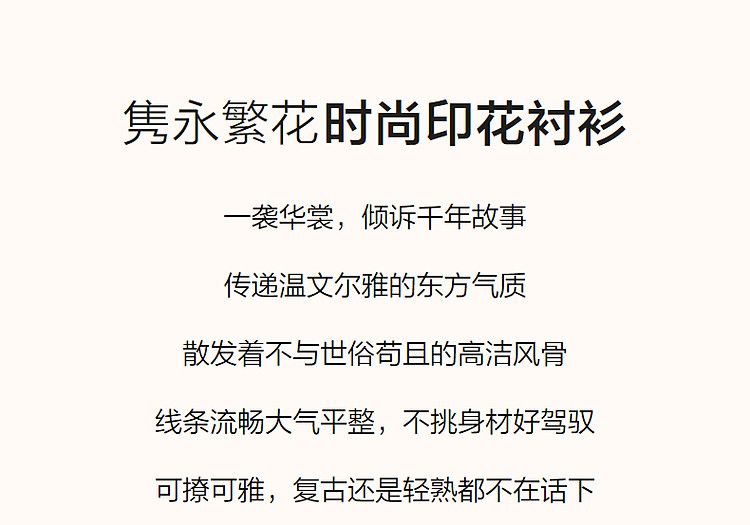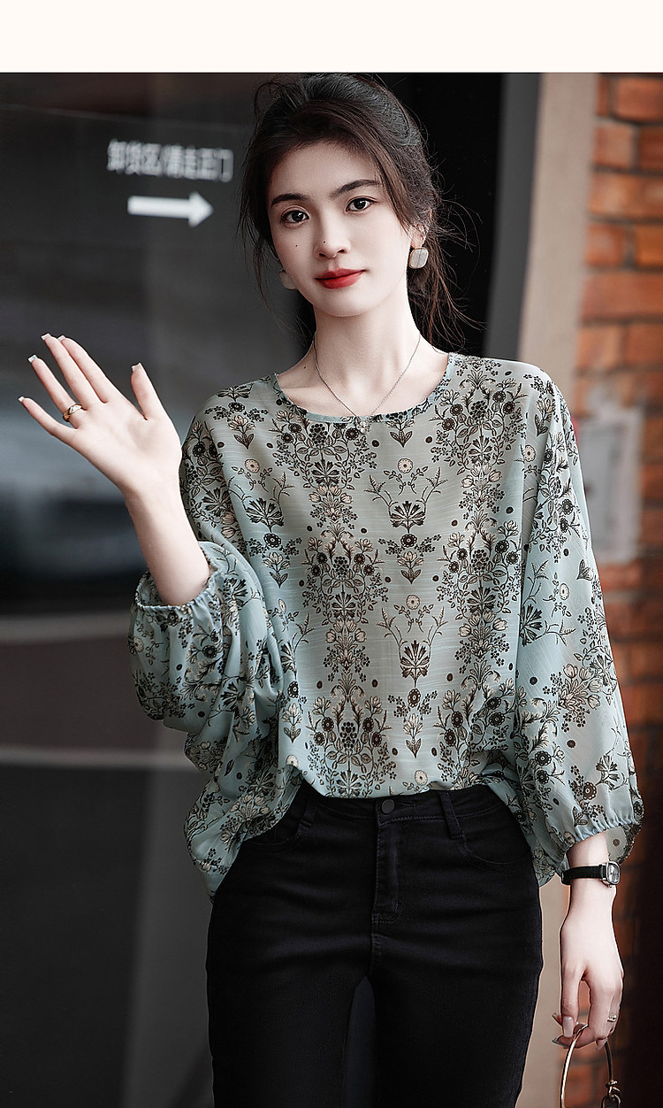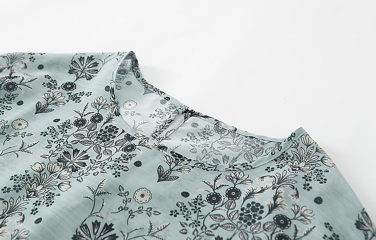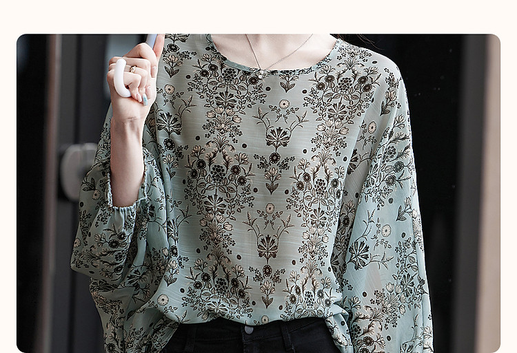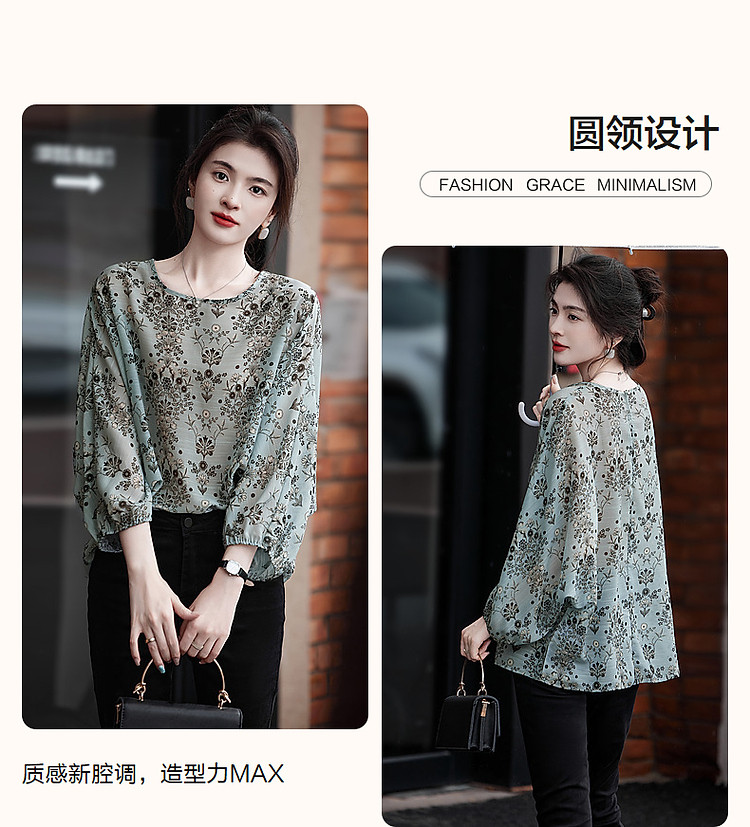 商品名称:【隽永繁花】秋圆领前后两片式分割廓形衬衫连肩高清印花女上衣 215361
