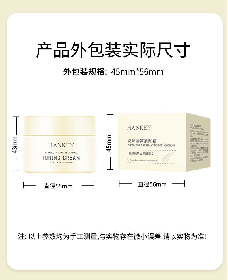 商品名称:Hankey/韩纪 防护隔离素颜霜50g 隔离遮瑕保湿三合一懒人霜