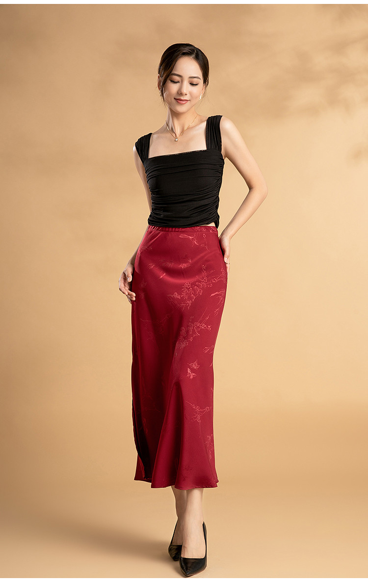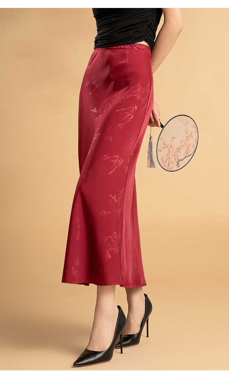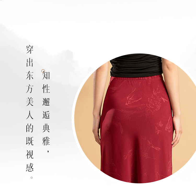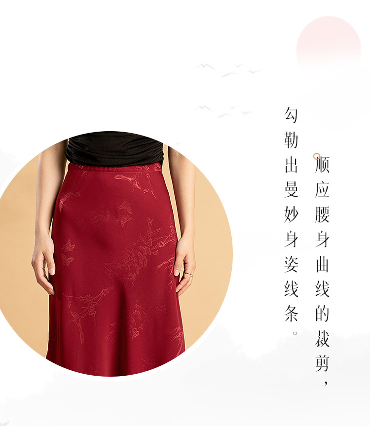 商品名称:【高腰印花半身裙】女士时尚修身气质显瘦蝴蝶江山红色侧开叉裙 823775