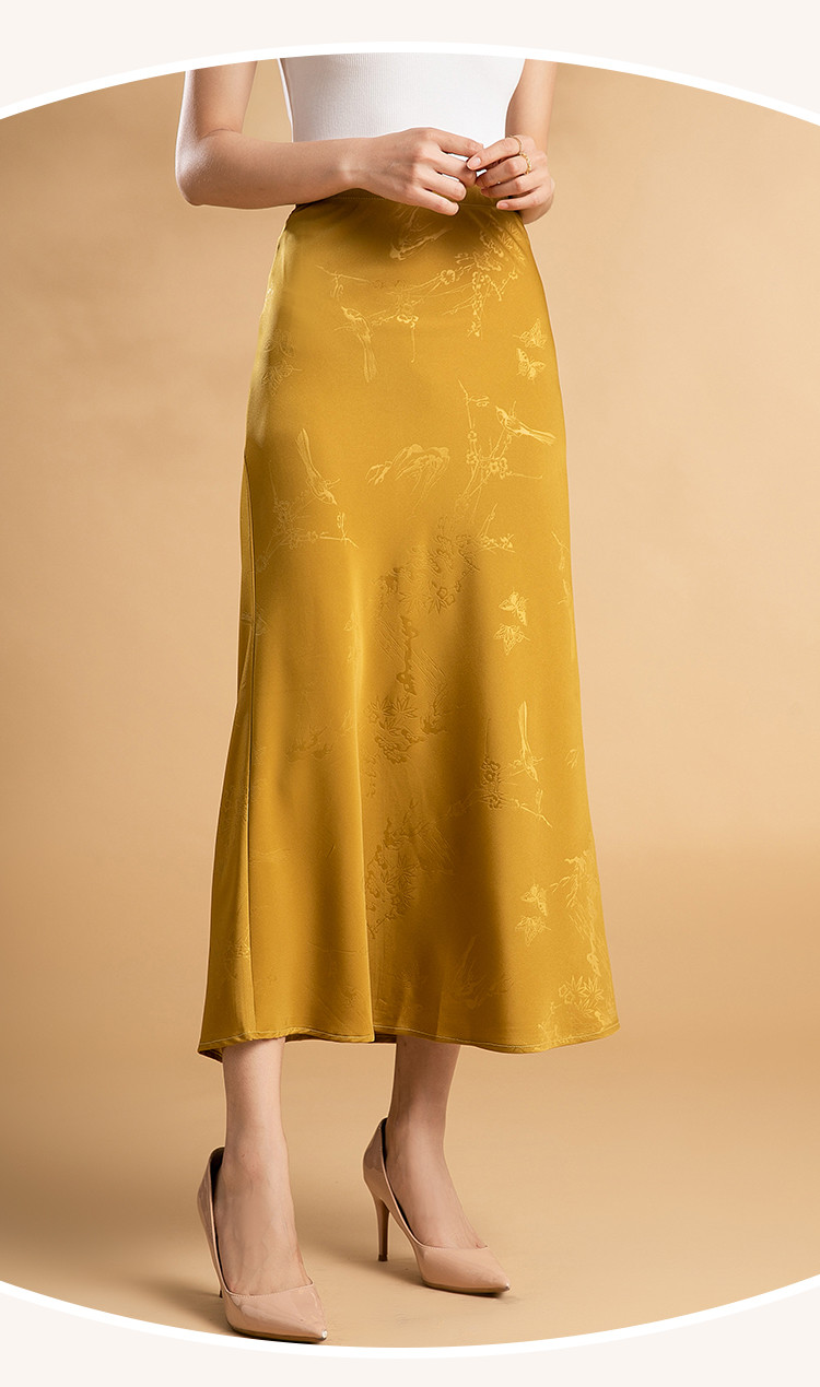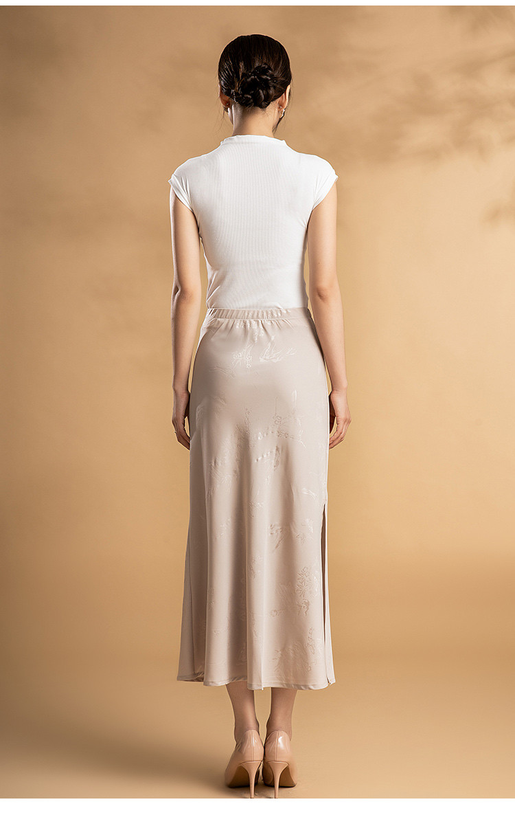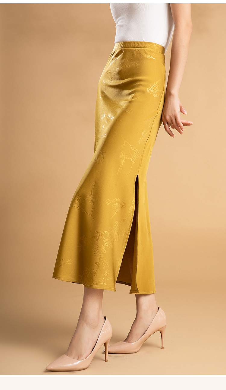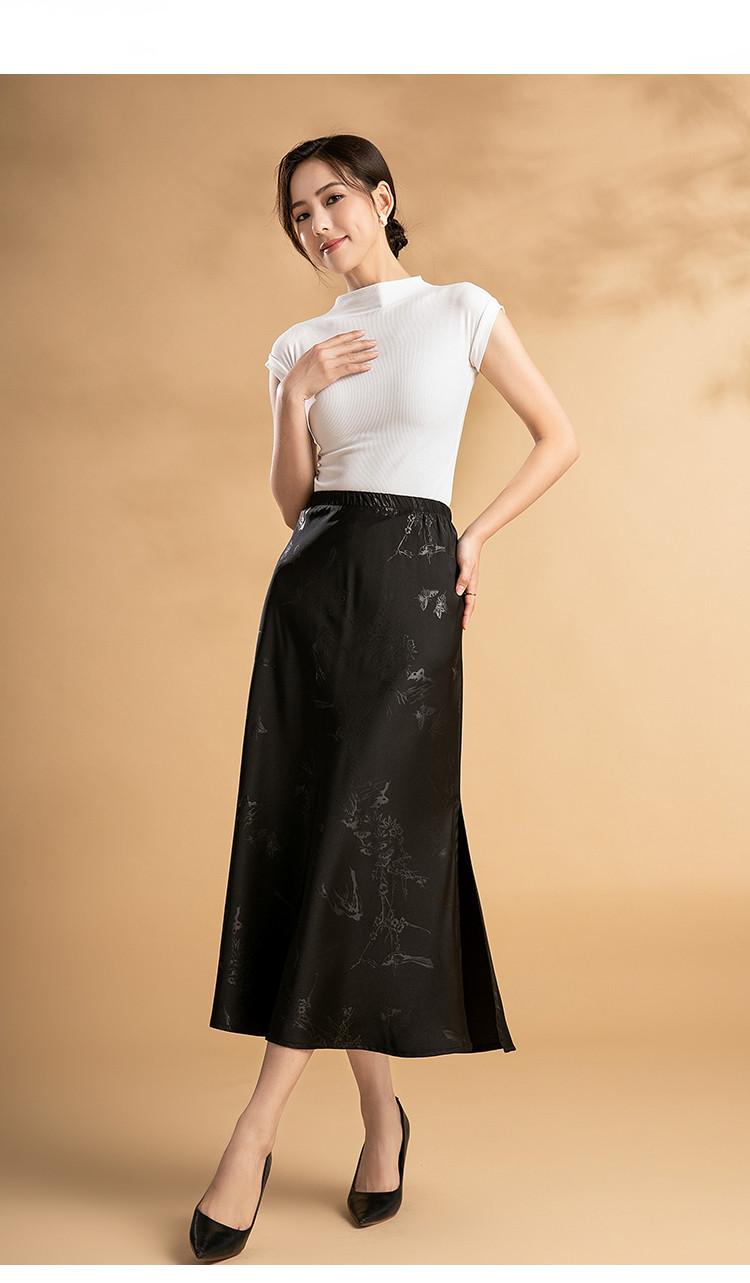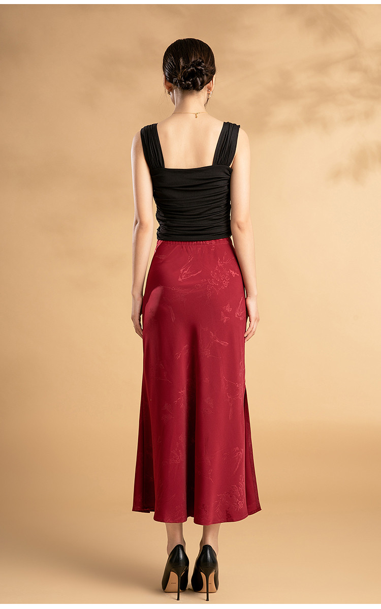 【高腰印花半身裙】女士时尚修身气质显瘦蝴蝶江山红色侧开叉裙 823775