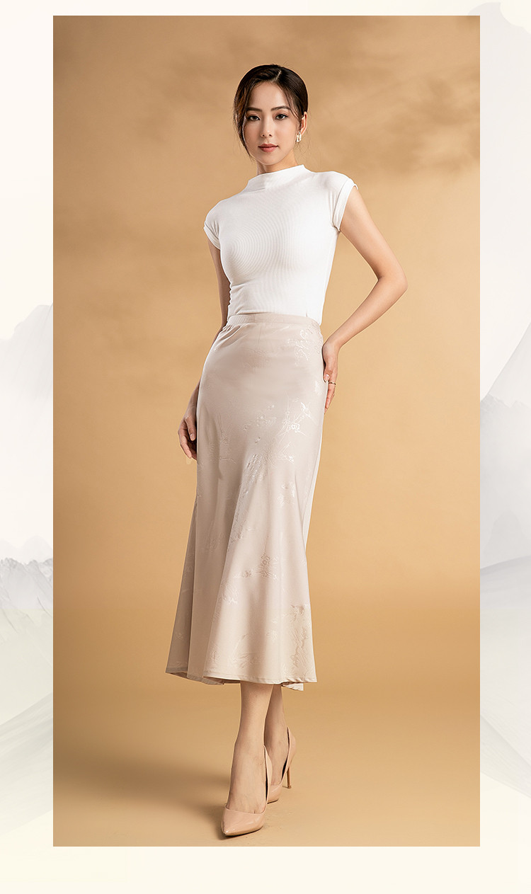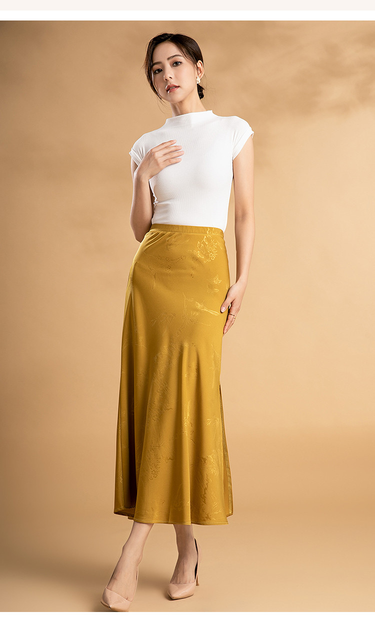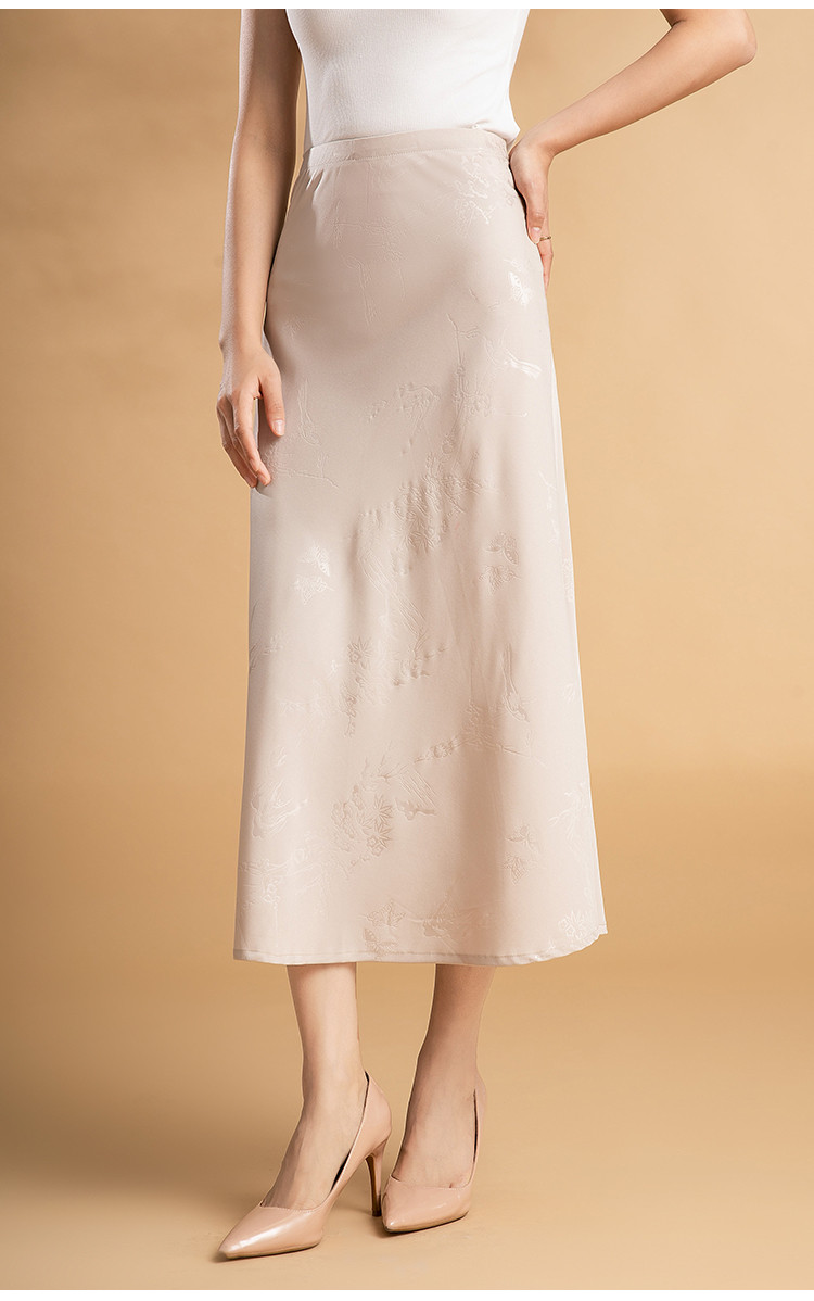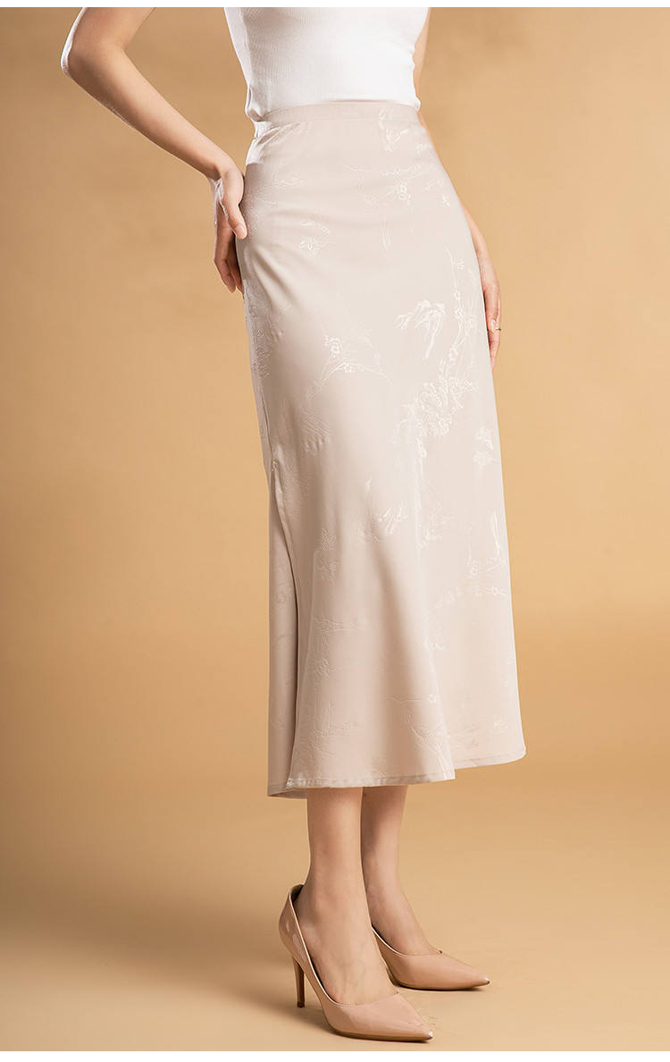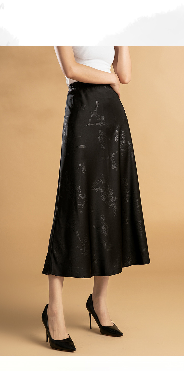 【高腰印花半身裙】女士时尚修身气质显瘦蝴蝶江山红色侧开叉裙 823775