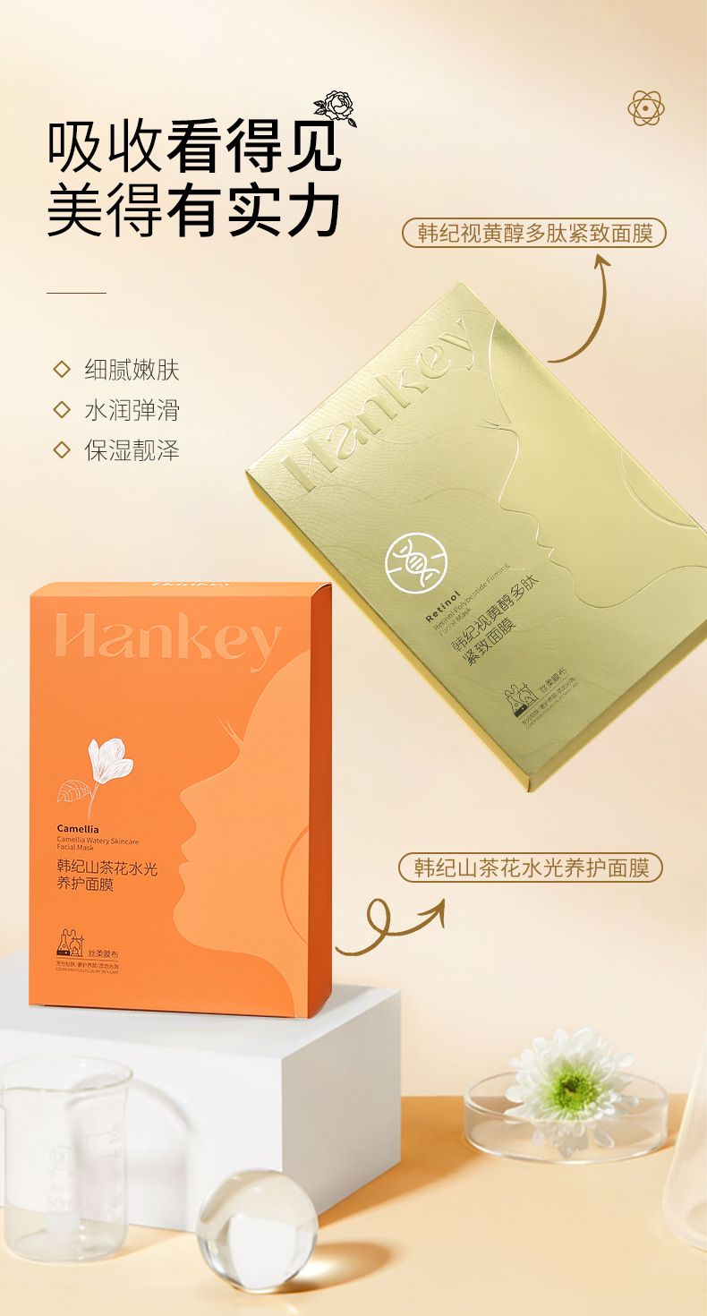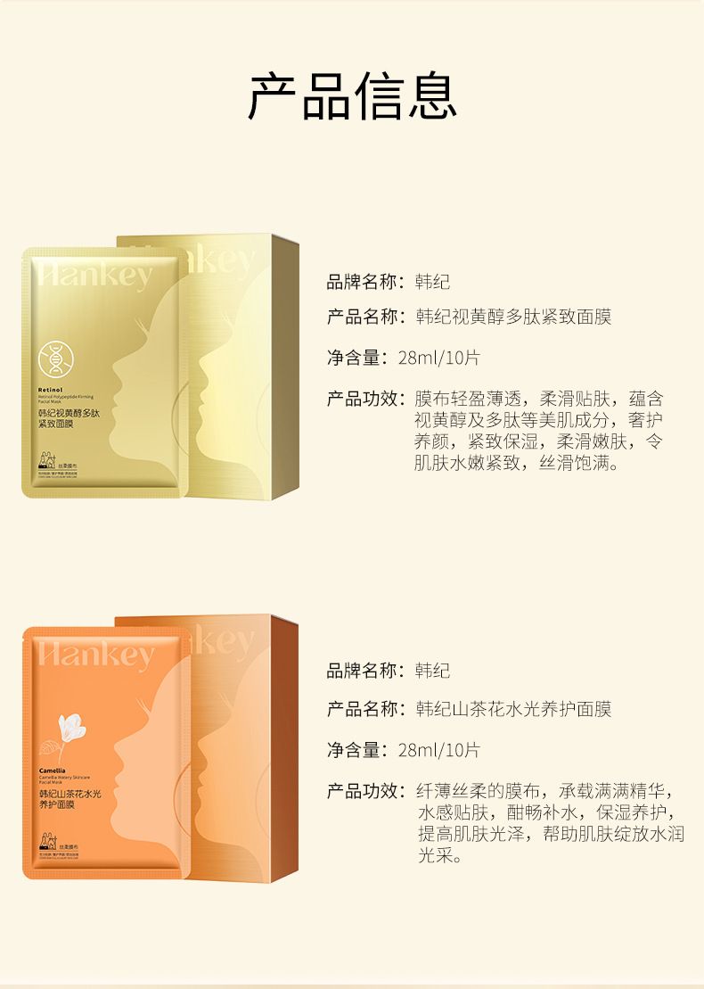 商品名称:Hankey/韩纪 视黄醇/山茶花水光养护面膜 10片/盒
