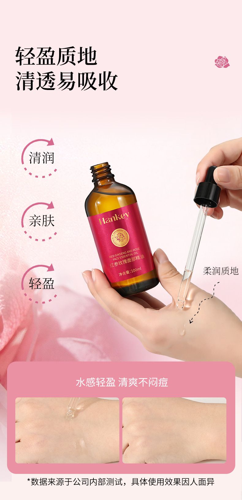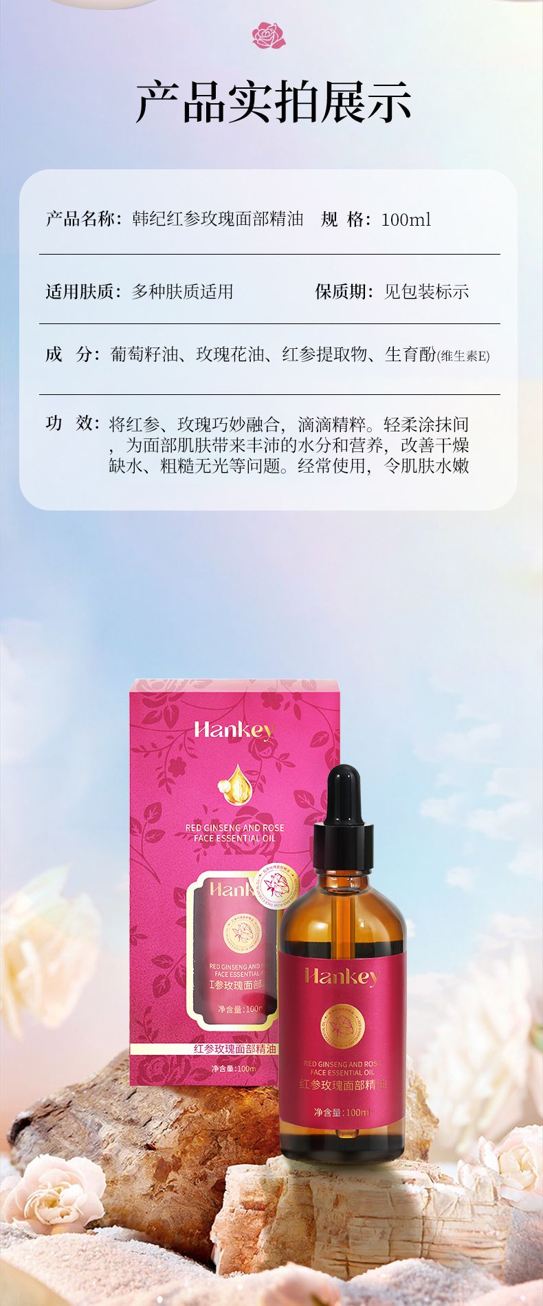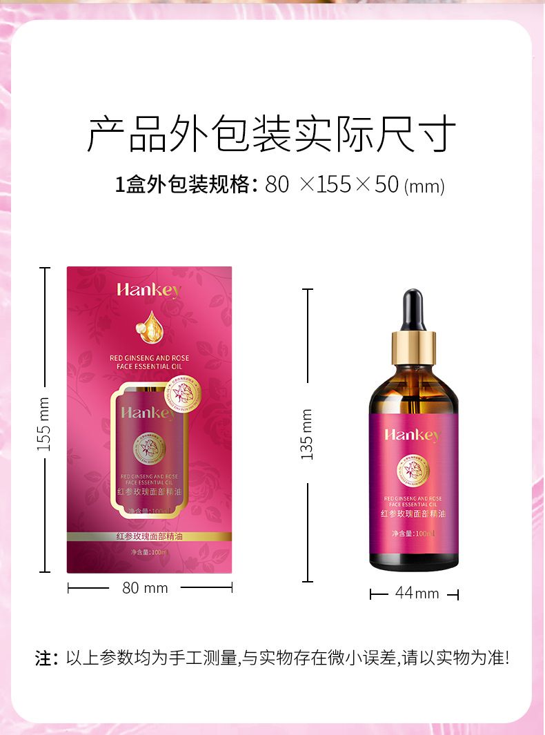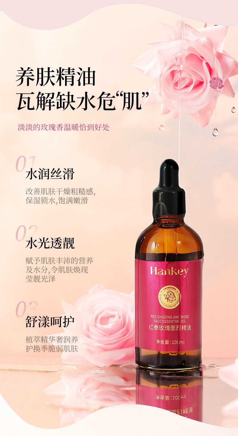 商品名称:Hankey/韩纪 红参玫瑰面部精油100ml 脸部按摩
