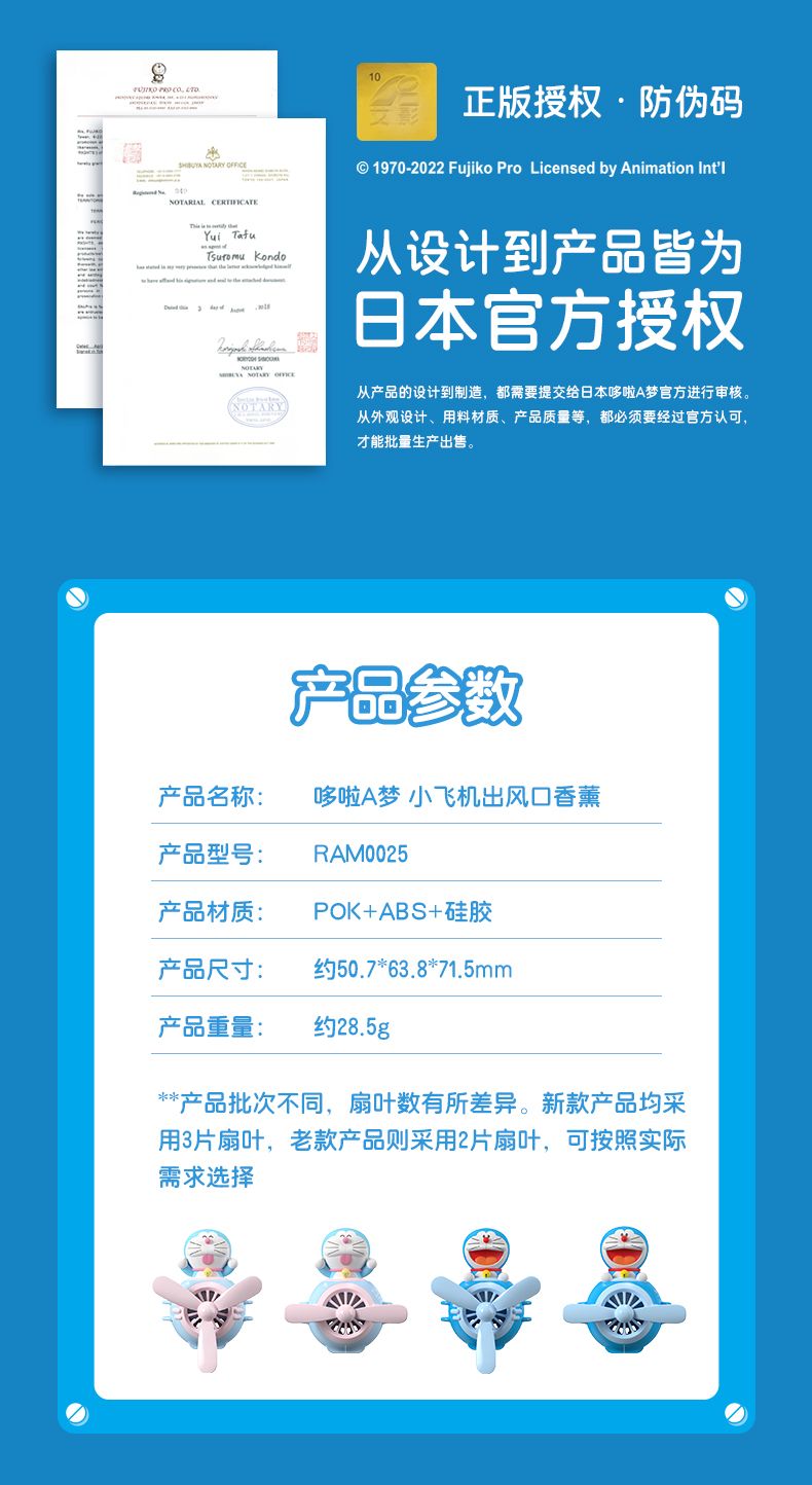 商品名称:ROCK 哆啦A梦 小飞机车载出风口香薰