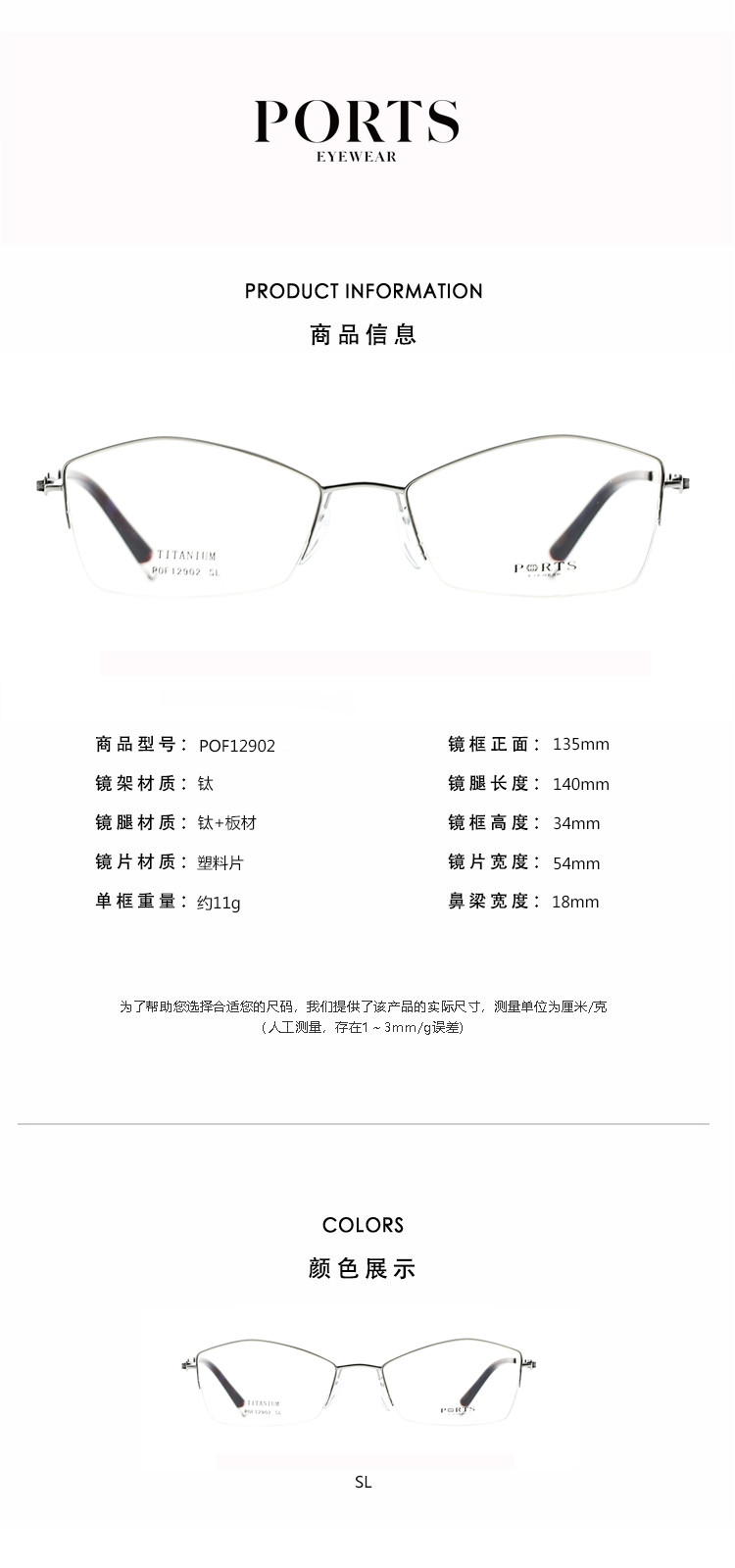 商品名称:PORTS女款轻奢优雅纯钛女士光学架POF12902 656074