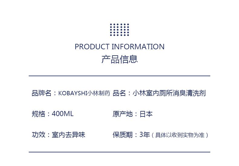 商品名称:日本 小林制药消臭元清新剂室内 400ml