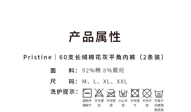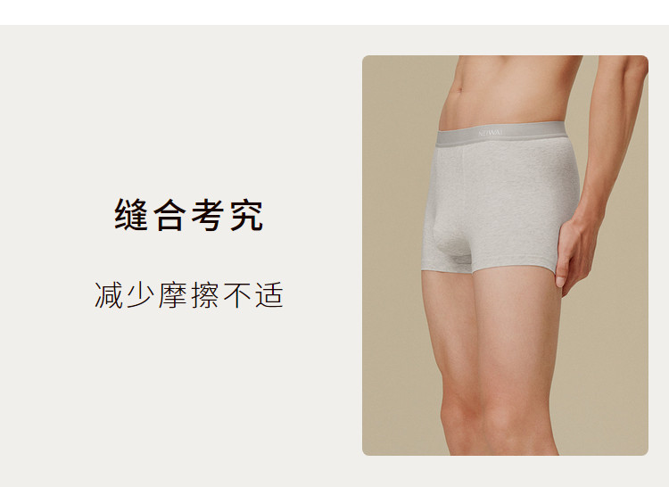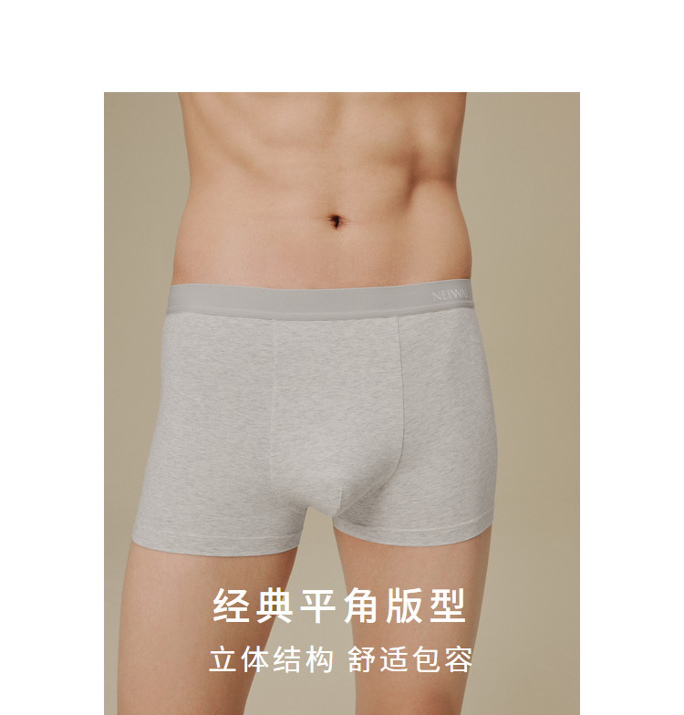 商品名称:NEIWAI内外60支长绒棉花灰平角内裤2条装亲肤透气 824778