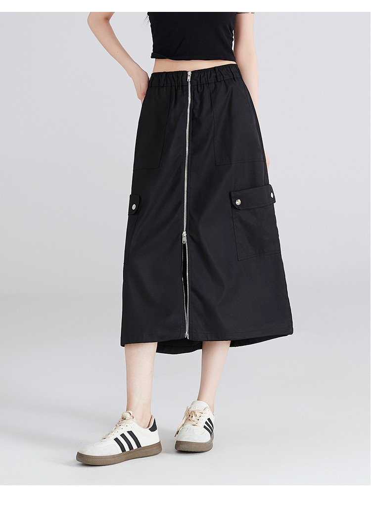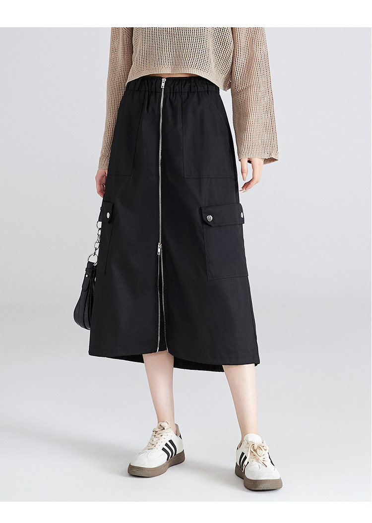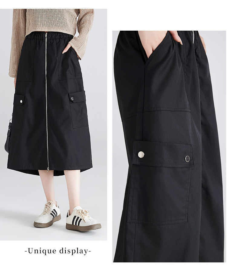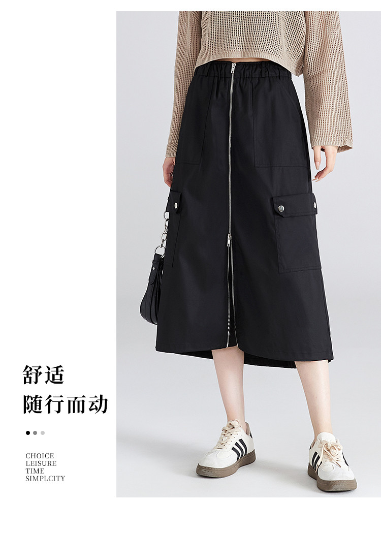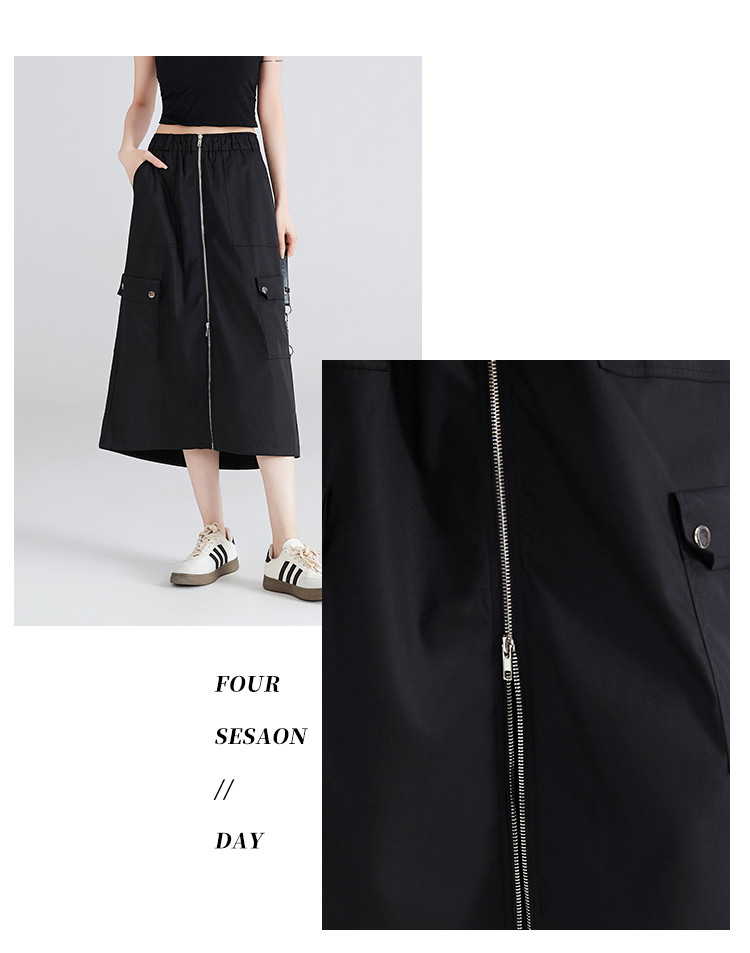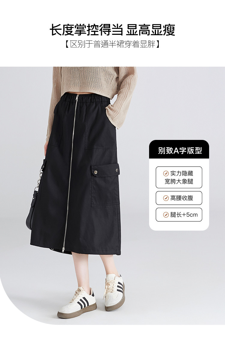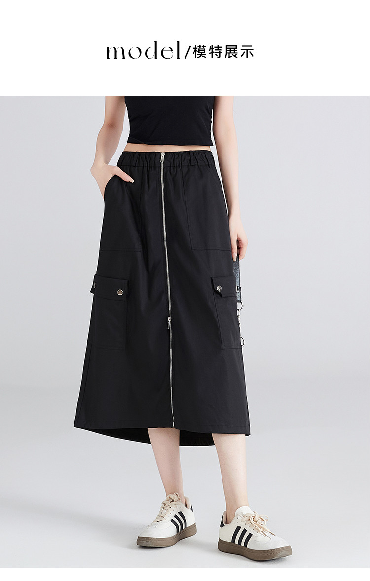 【一衣多穿】甜酷风休闲松紧腰工装裙日常百搭抽绳拉链女款半身裙 786305
