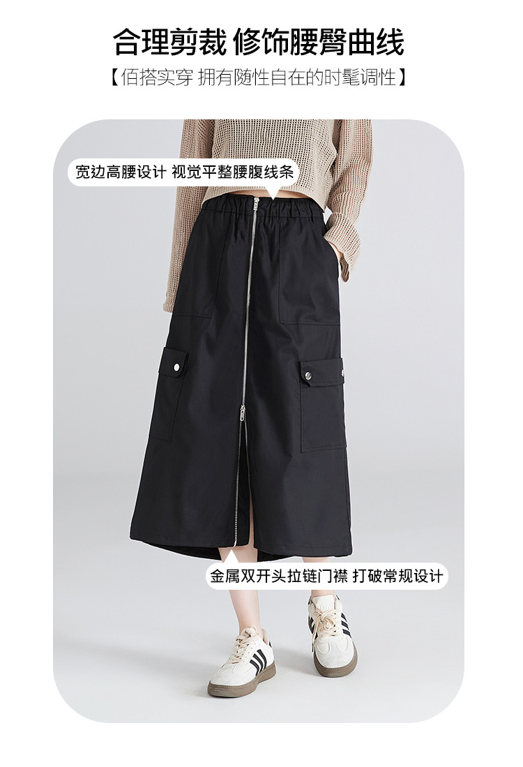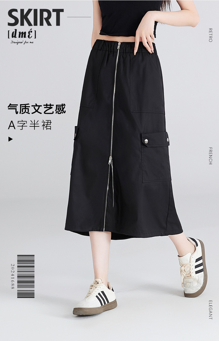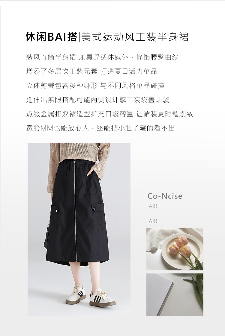 商品名称:【一衣多穿】甜酷风休闲松紧腰工装裙日常百搭抽绳拉链女款半身裙 786305