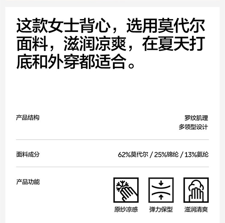 商品名称:501C女士小圆领背心美背高弹莫代尔显瘦遮副乳内搭 099077