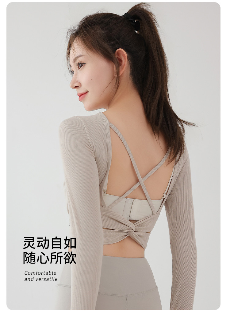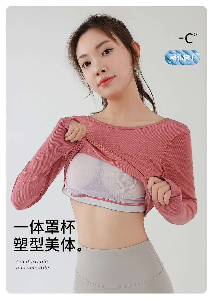 商品名称:带胸垫瑜伽服女上衣高级感舞蹈练功训练服拉丁舞普拉提t恤罩衫 211219