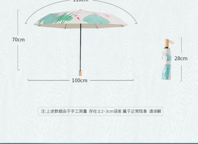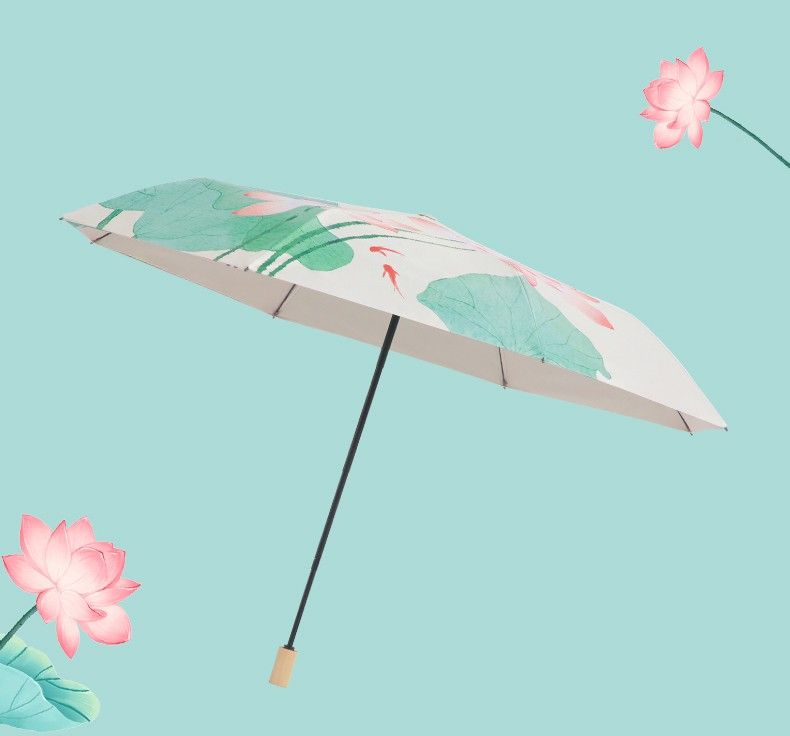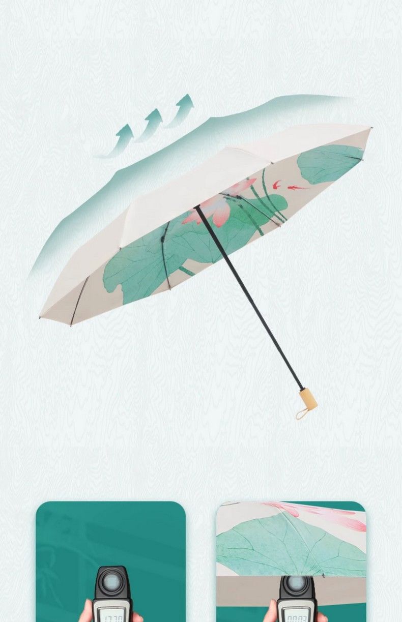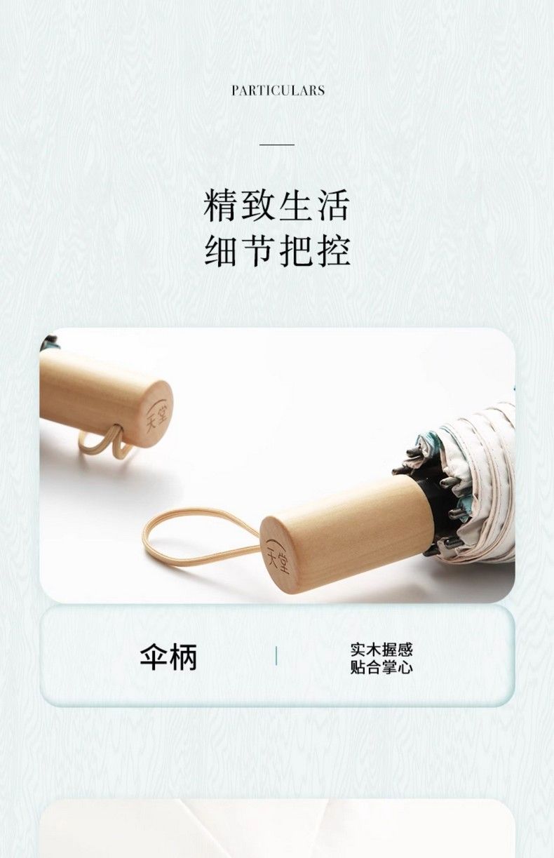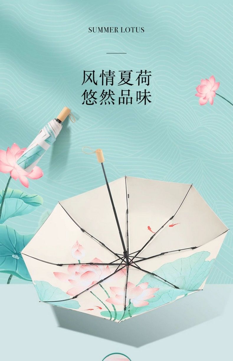 商品名称:天堂伞 双层防晒黑胶太阳伞UPF50+防紫外线晴雨伞三折中国风女士遮阳伞55CM*8K 38043E夏荷