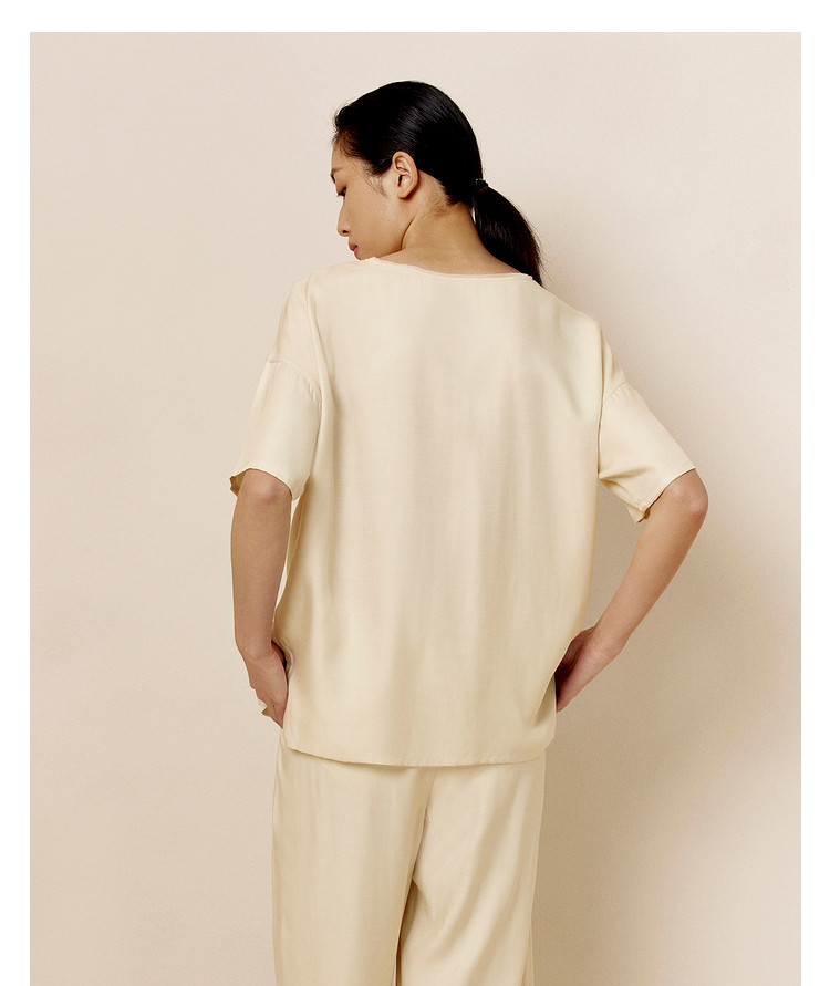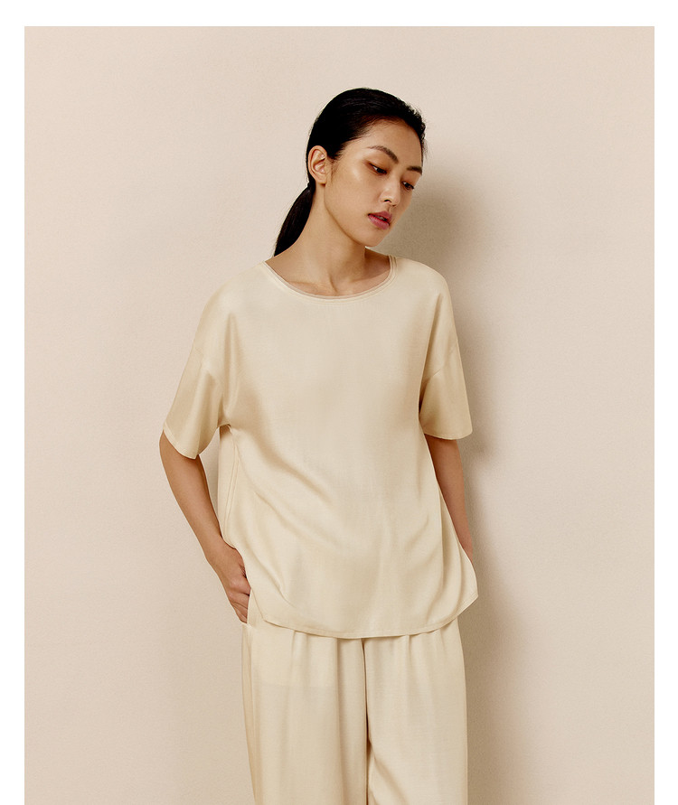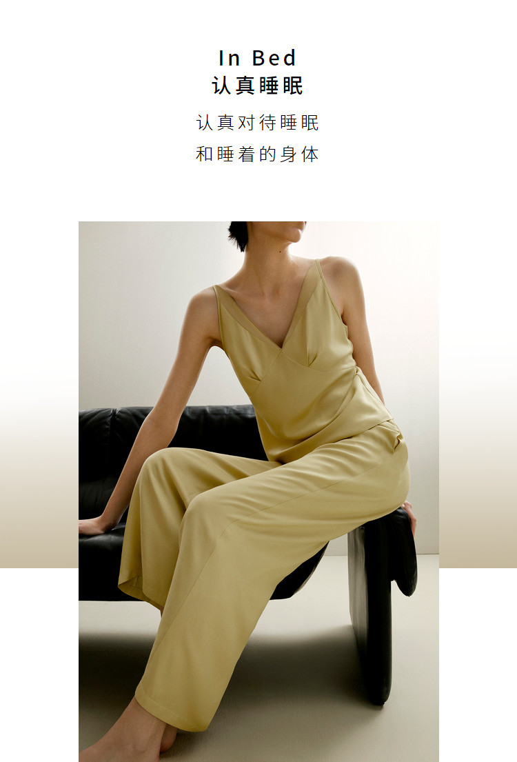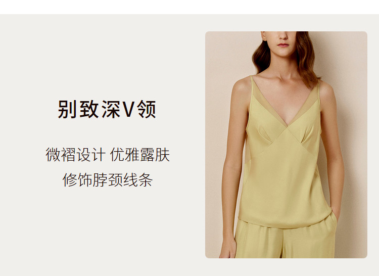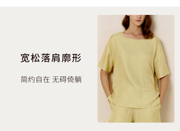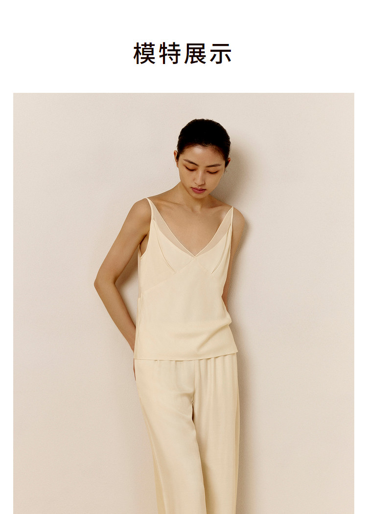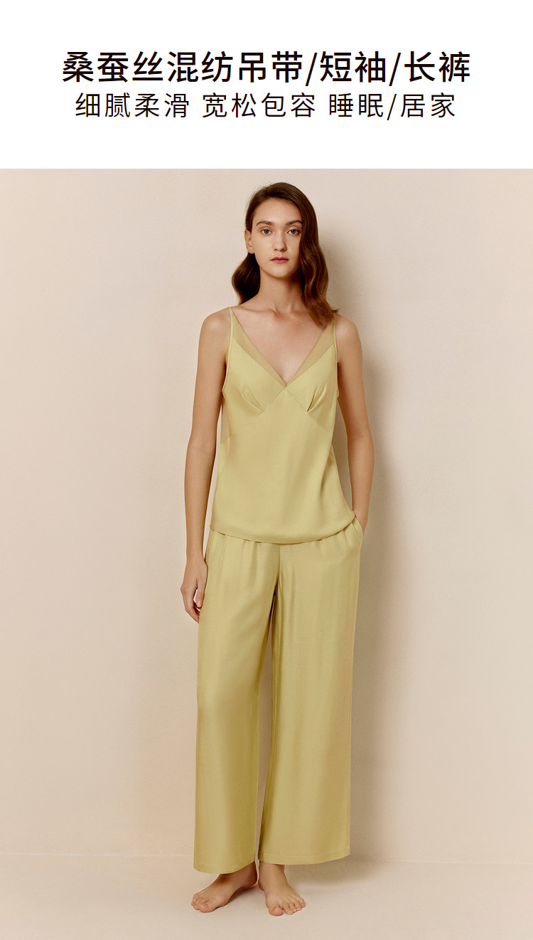 商品名称:NEIWAI内外桑蚕丝混纺微褶吊带/短袖/垂顺长裤宽松家居服 673098