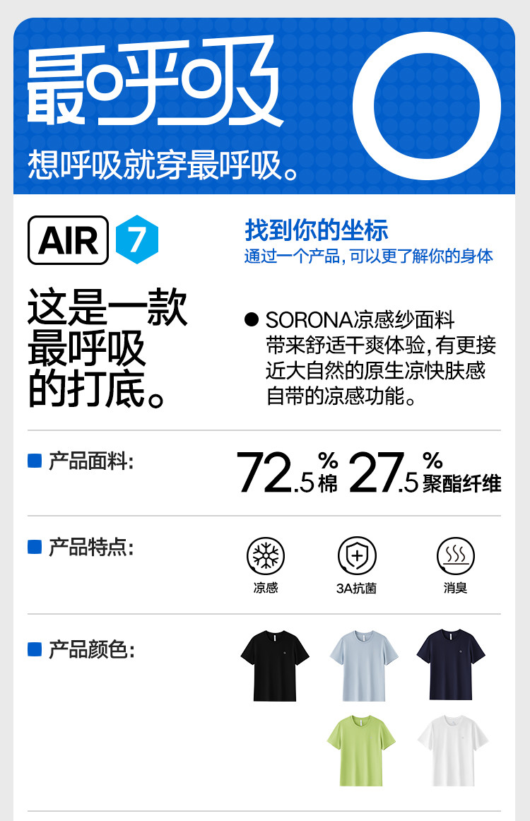 商品名称:【3A抑菌 凉感科技】夏季男士冰丝短袖T恤白色透气休闲体恤衫 920474