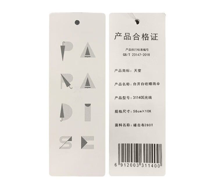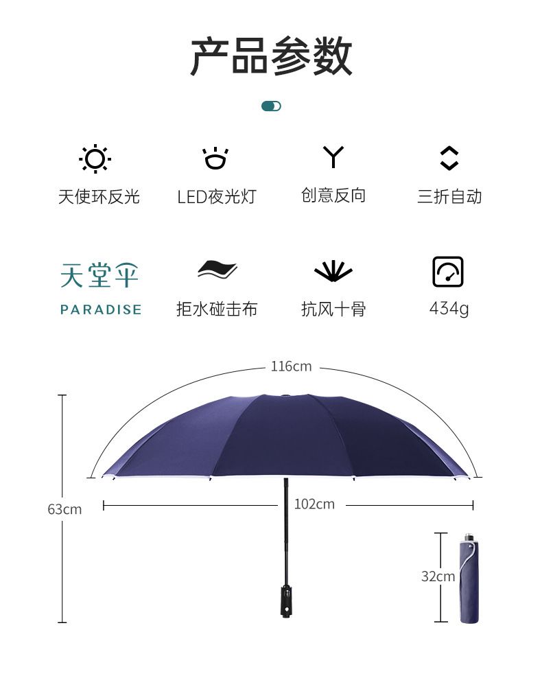 商品名称:天堂 全钢大号全自动三折商务抗风拒水晴雨两用58CM*10K 31140E光线