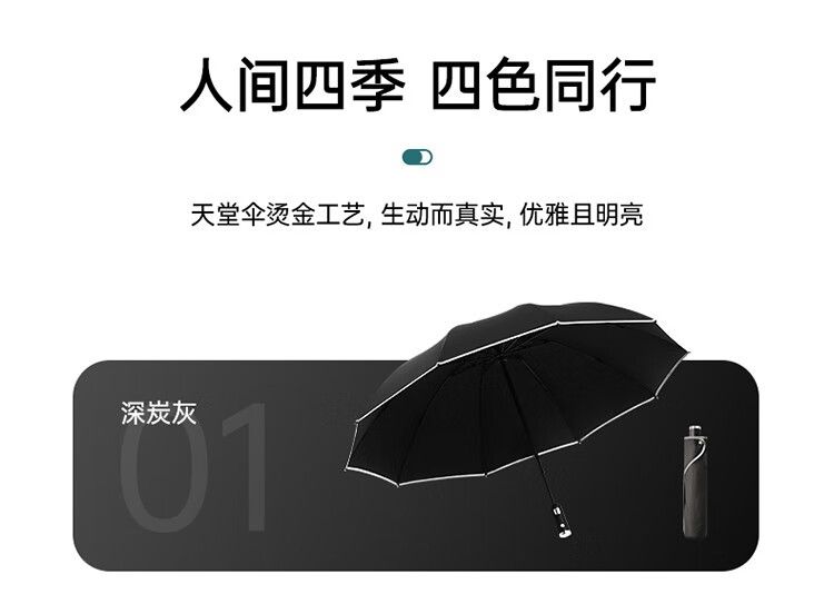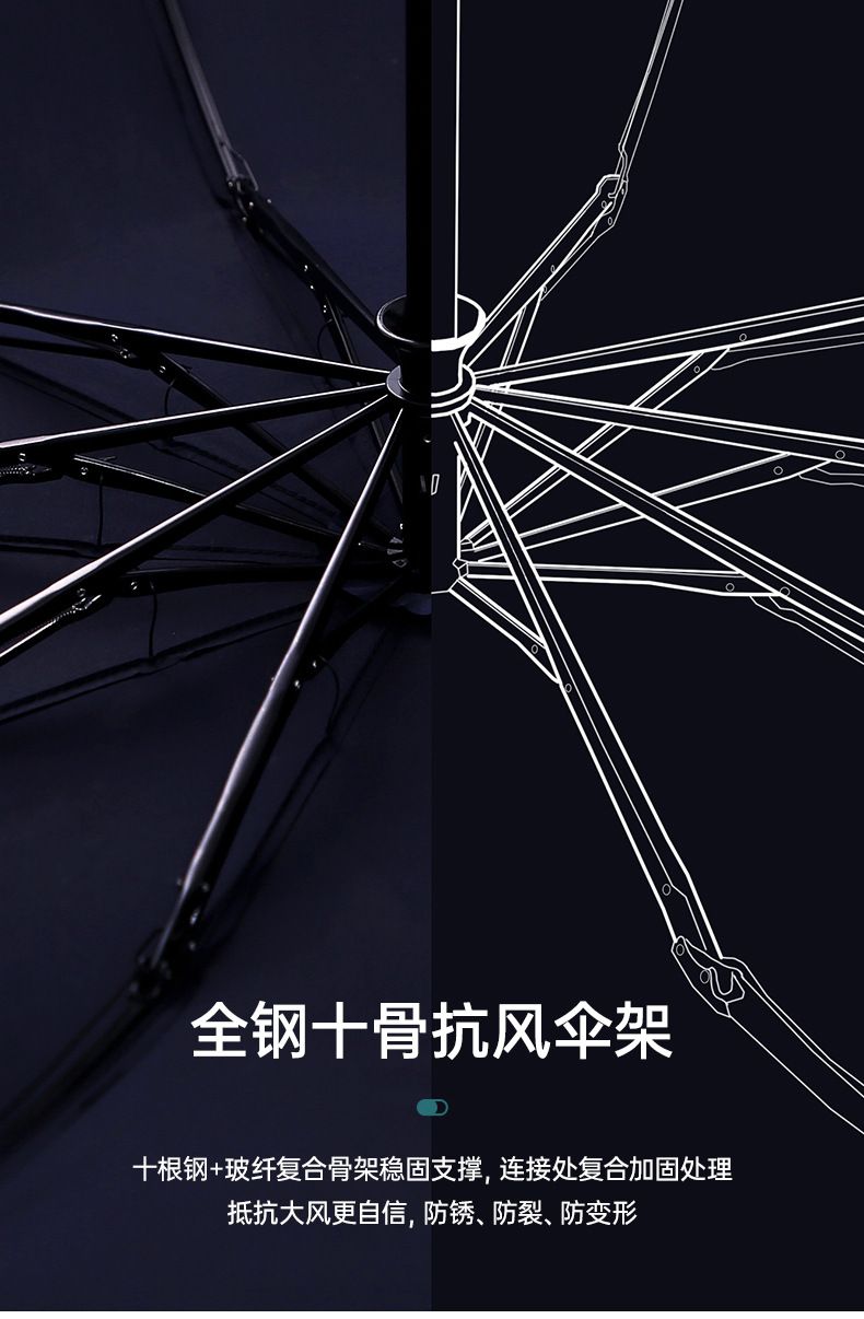 天堂 全钢大号全自动三折商务抗风拒水晴雨两用58CM*10K 31140E光线