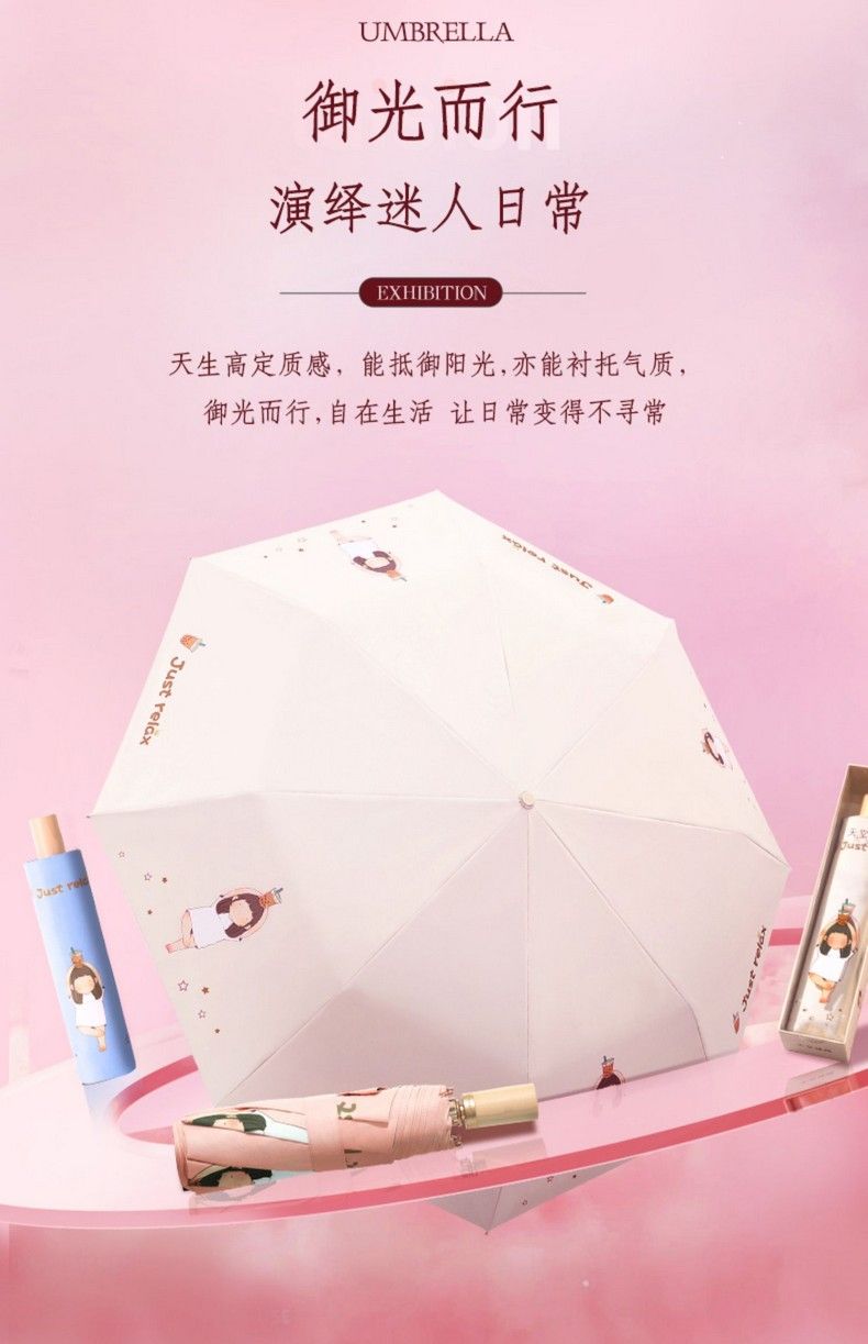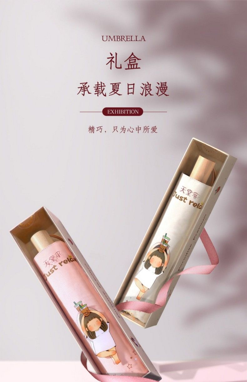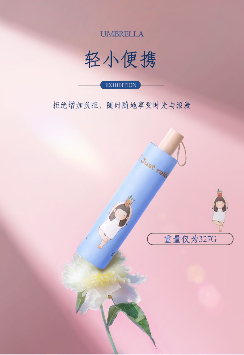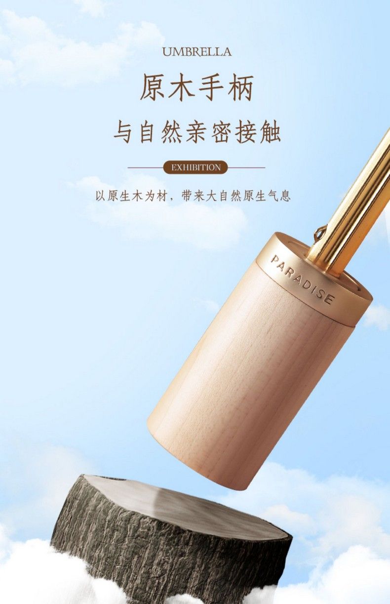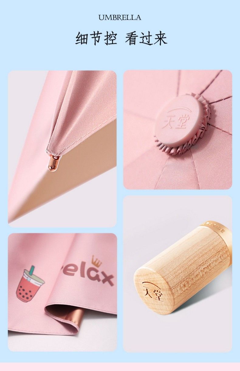 天堂 金胶防晒防紫外线遮太阳伞木柄三折晴雨两用伞55CM*8K 37501禅趣