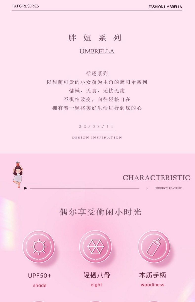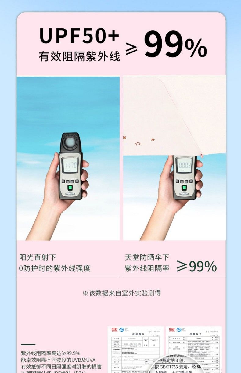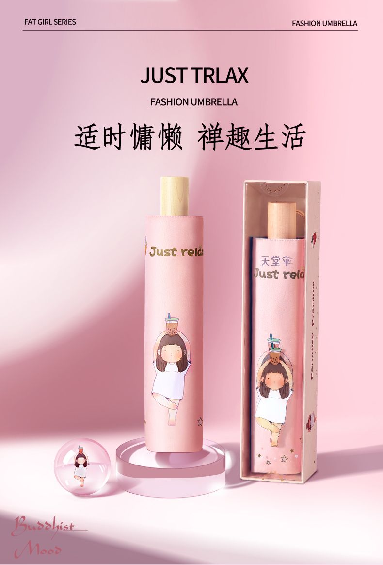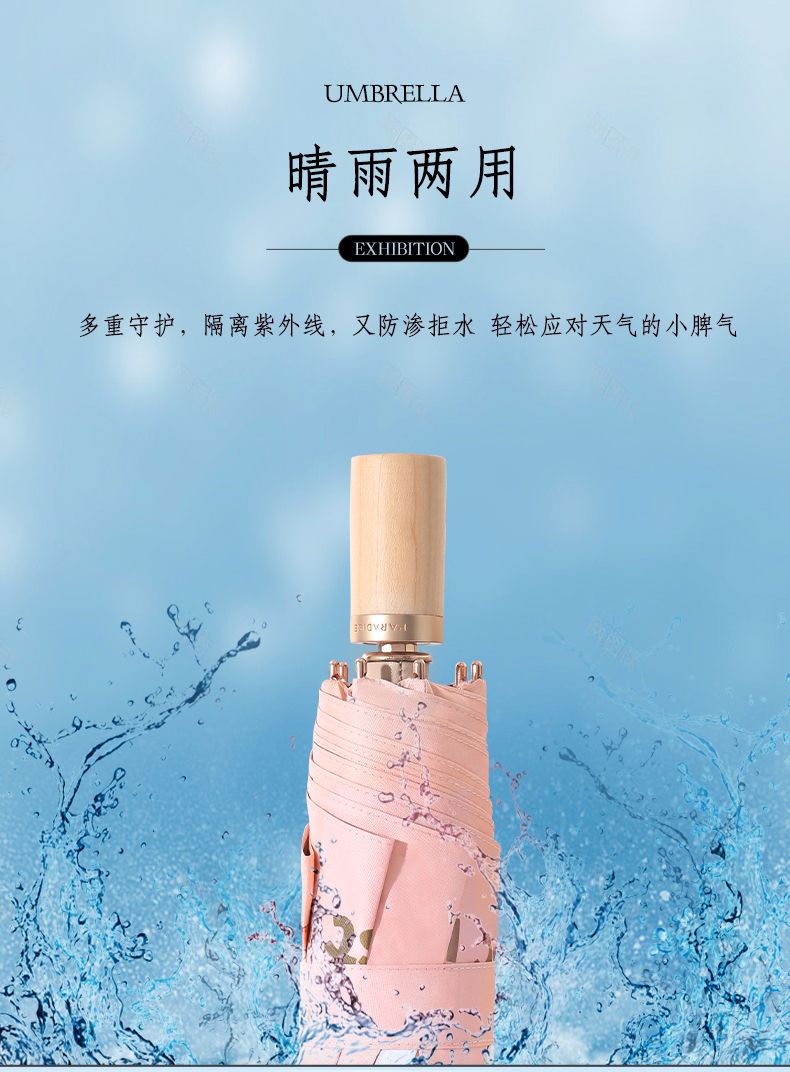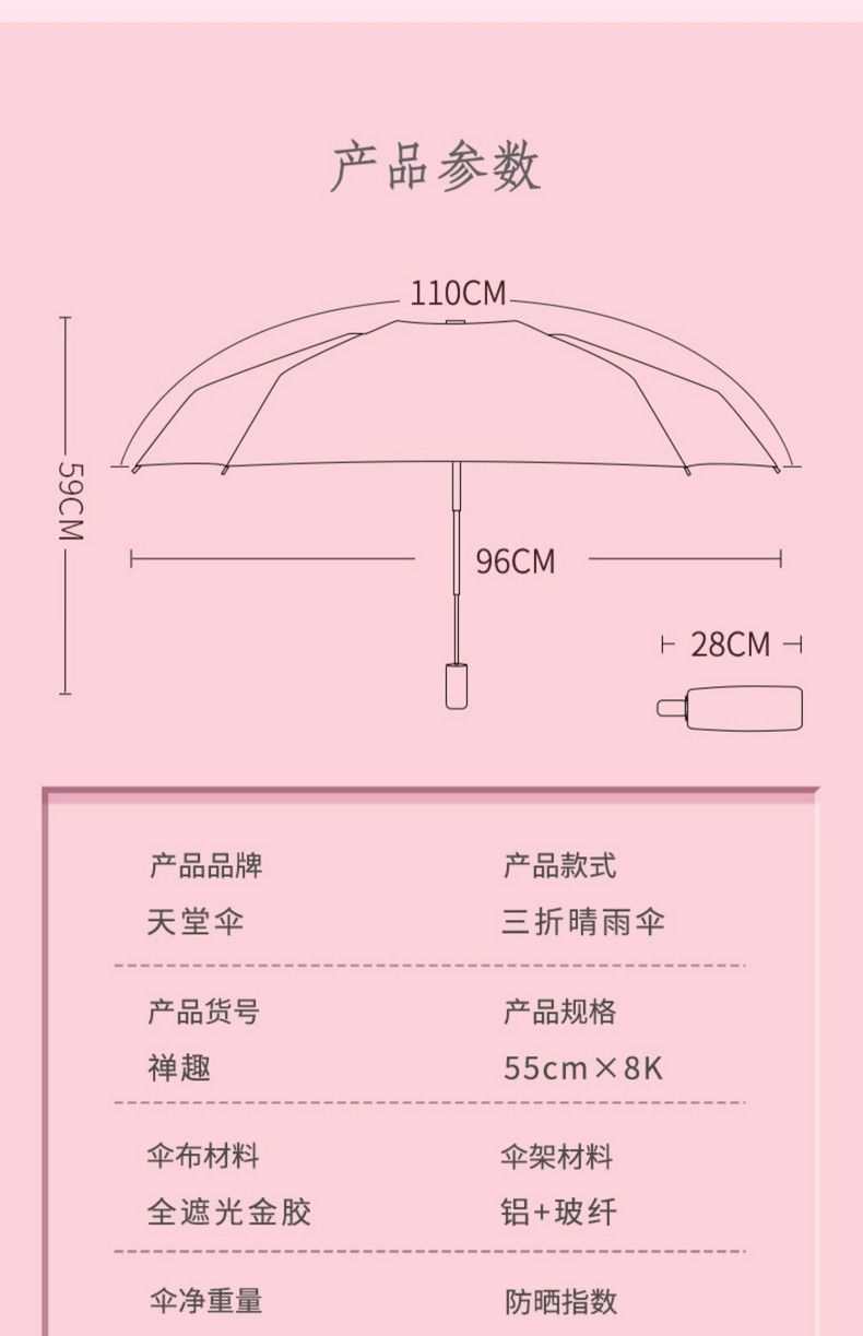 商品名称:天堂 金胶防晒防紫外线遮太阳伞木柄三折晴雨两用伞55CM*8K 37501禅趣